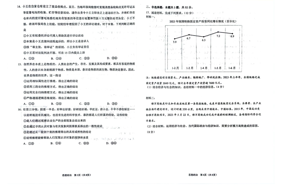辽宁鞍山高三上(质检Ⅰ)-政治试题+答案.pdf_第2页