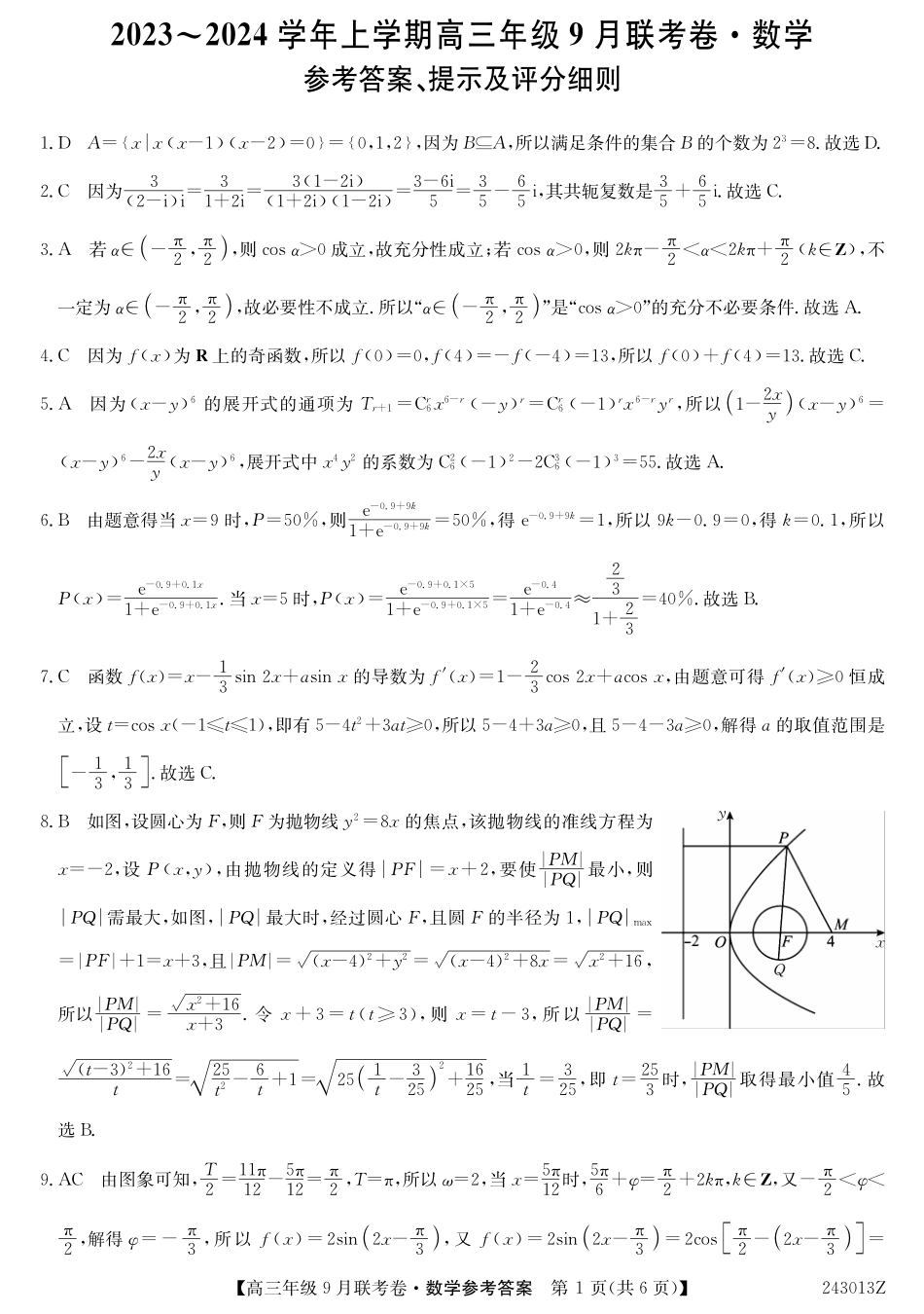 辽宁省名校协作体2023-2024学年高三上学期9月联考 数学答案.pdf