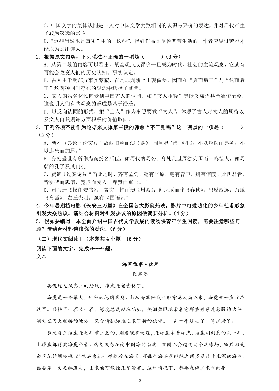 辽宁省沈阳市第一二〇中学2023-2024学年高三上学期第四次质量监测 语文.pdf_第3页