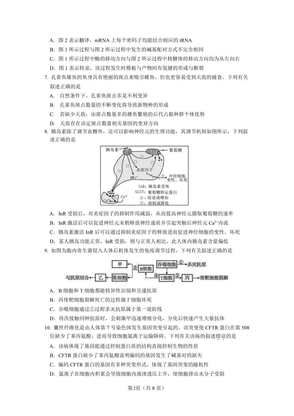 南京六校联合体高三上(8月调研)-生物试题+答案.pdf_第2页