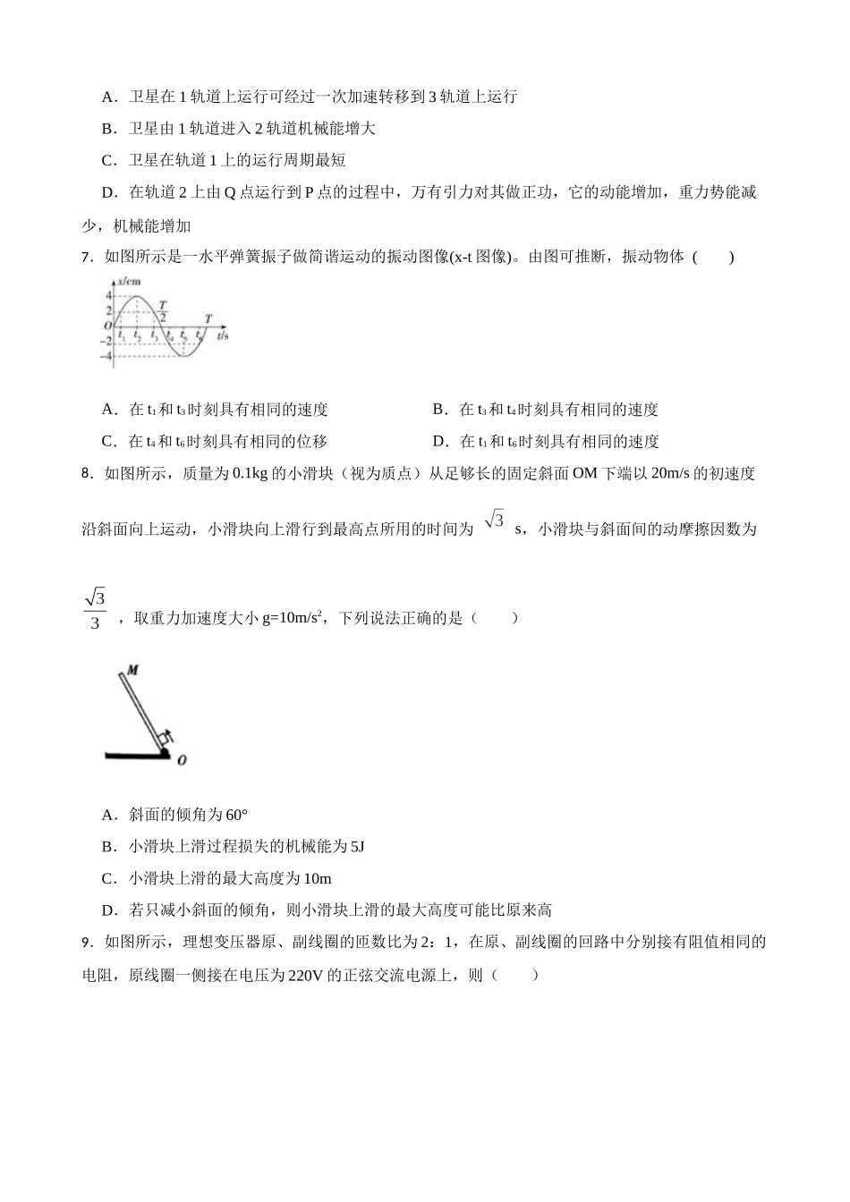 2023届湖北襄阳高考物理模拟试卷(word版含答案).docx_第2页