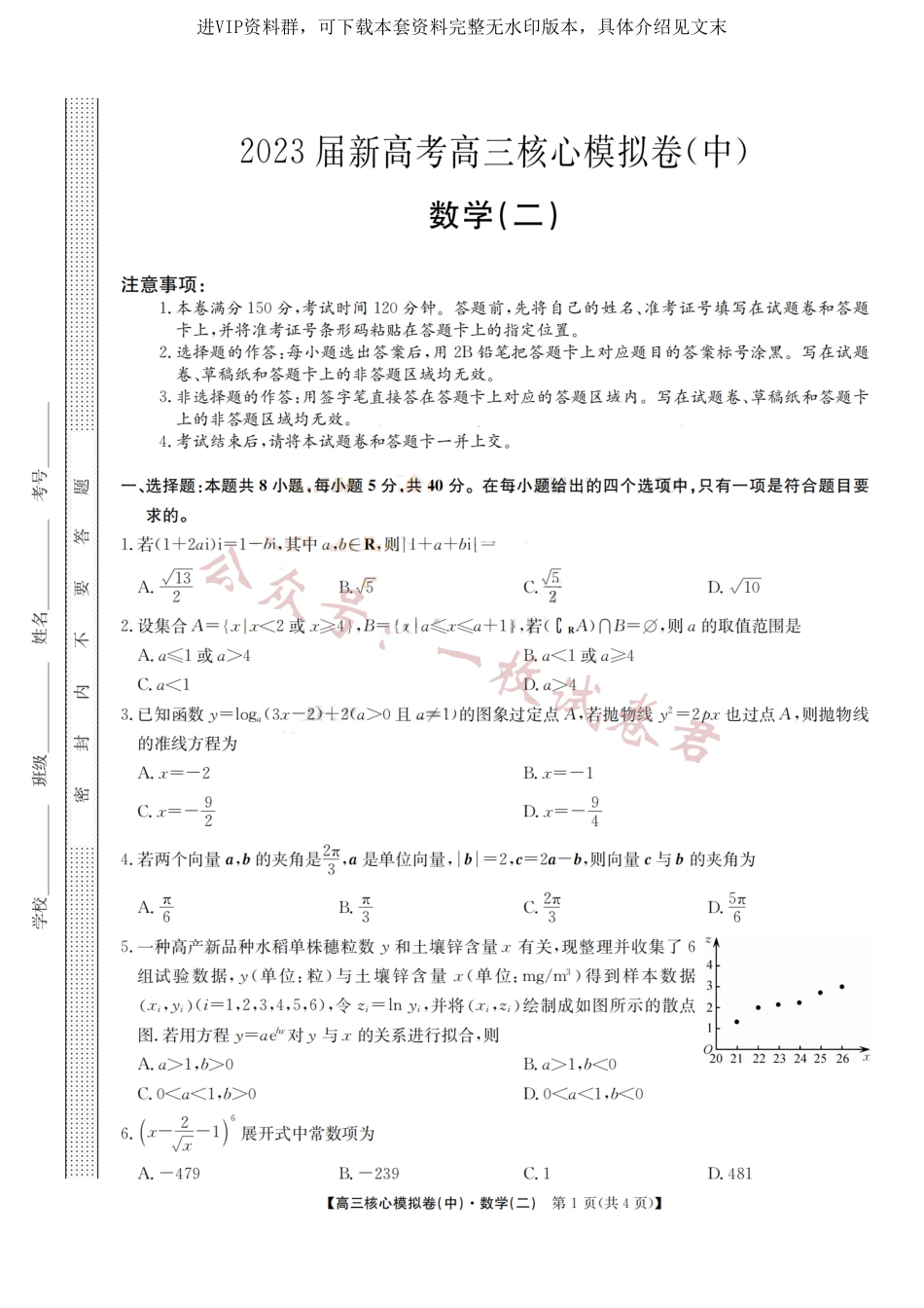 2023届新高考高三核心模拟卷(中)数学.pdf_第2页