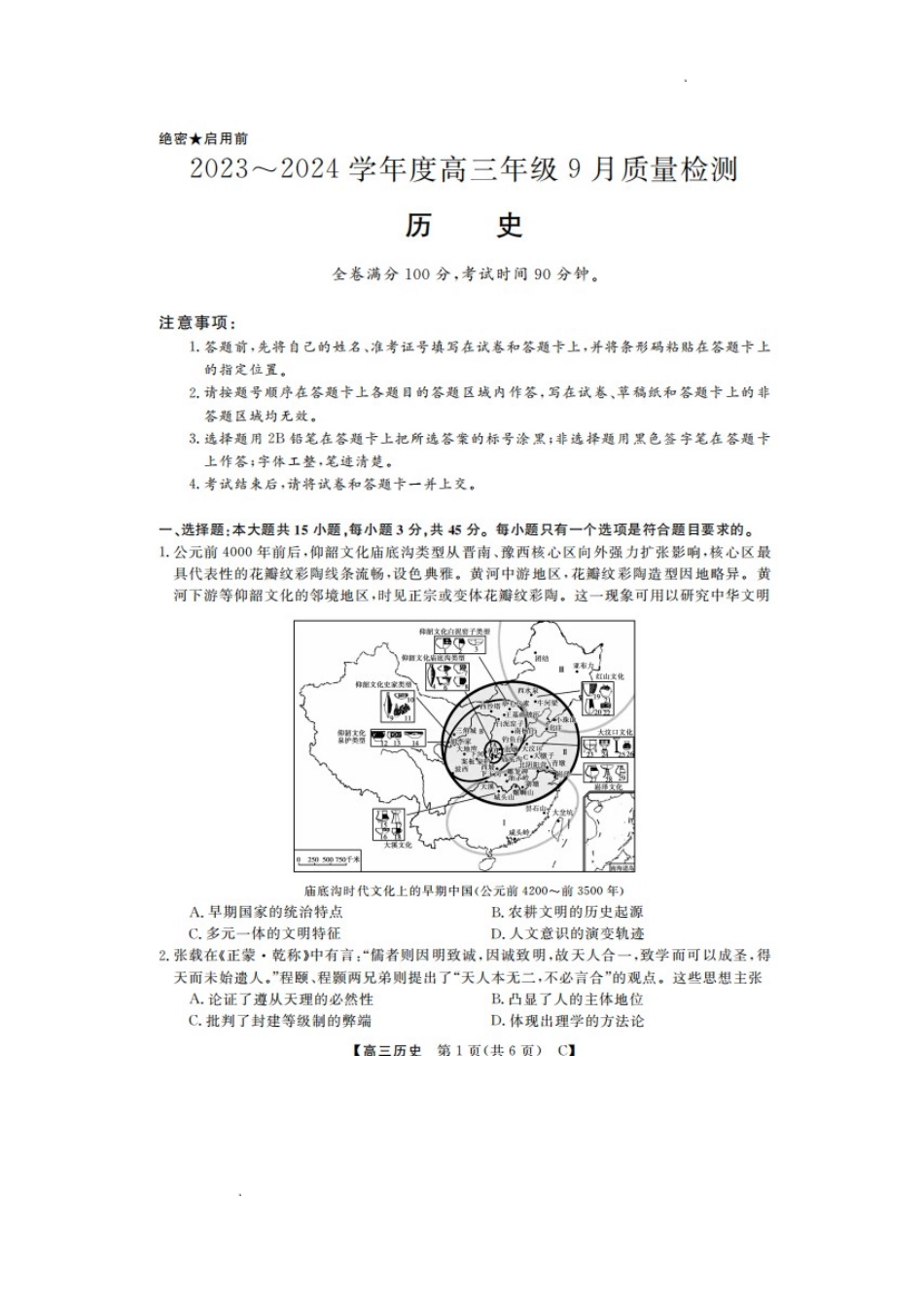山东省金科大联考2024届高三上学期9月质量检测历史.doc