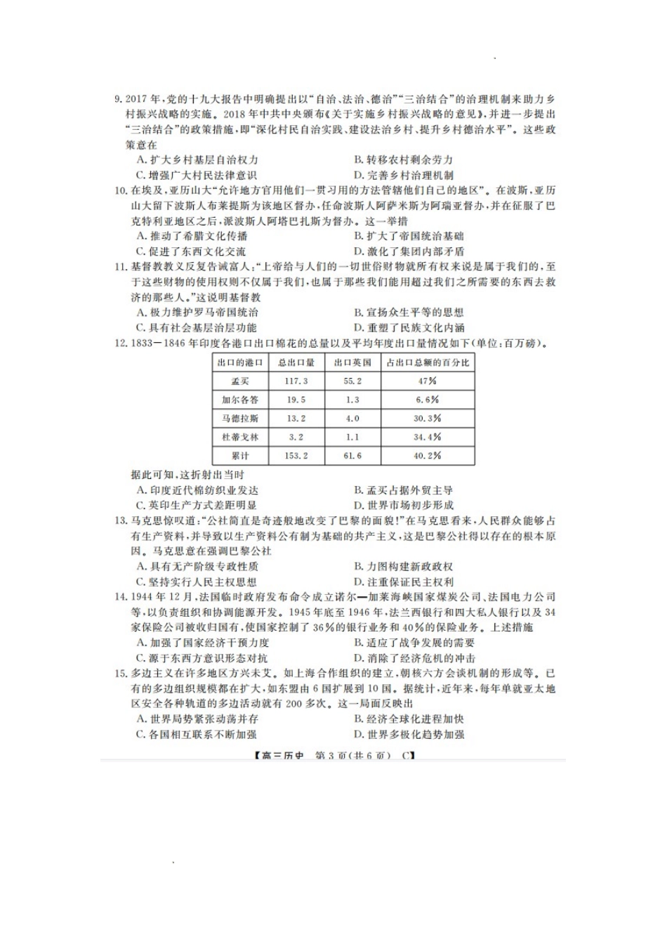 山东省金科大联考2024届高三上学期9月质量检测历史.doc_第3页