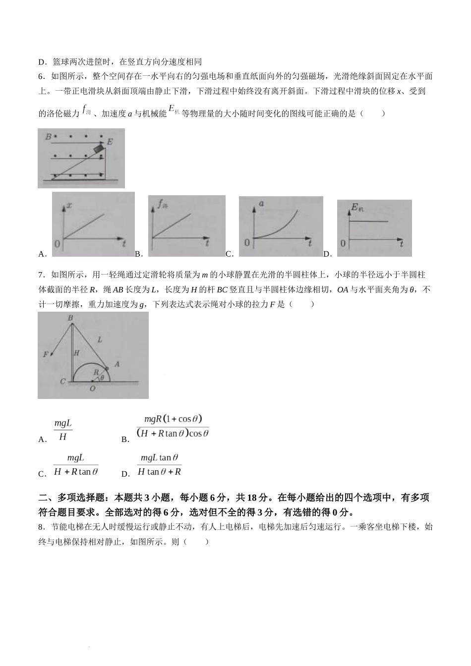 2024 年深圳市高三年级第一次调研考试物理试题.docx_第2页