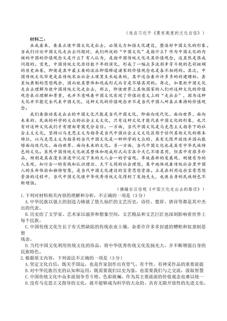 2024届安徽省马鞍山市高三教学质量监测(三模)语文试题+答案.docx_第2页