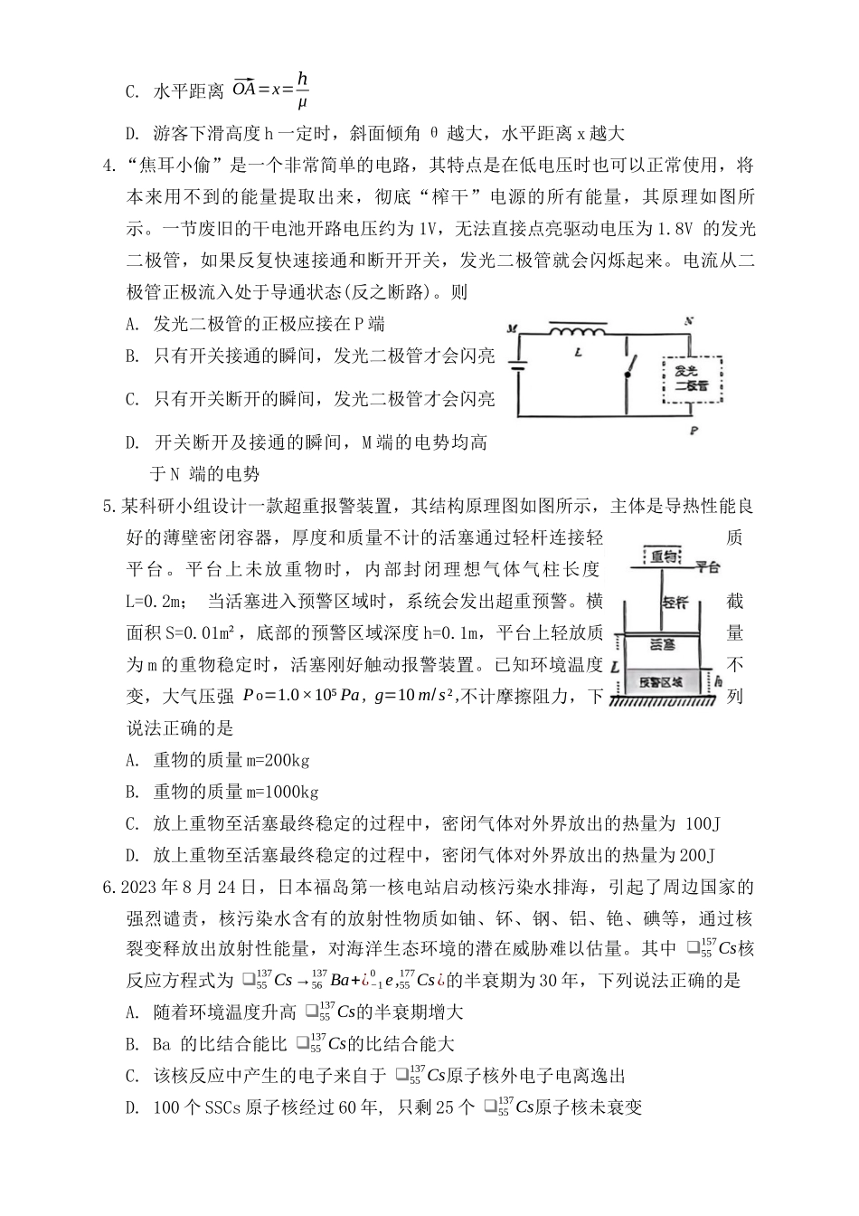 2024届辽宁省葫芦岛市普通高中高三下学期第一次模拟考试物理试题.docx_第2页