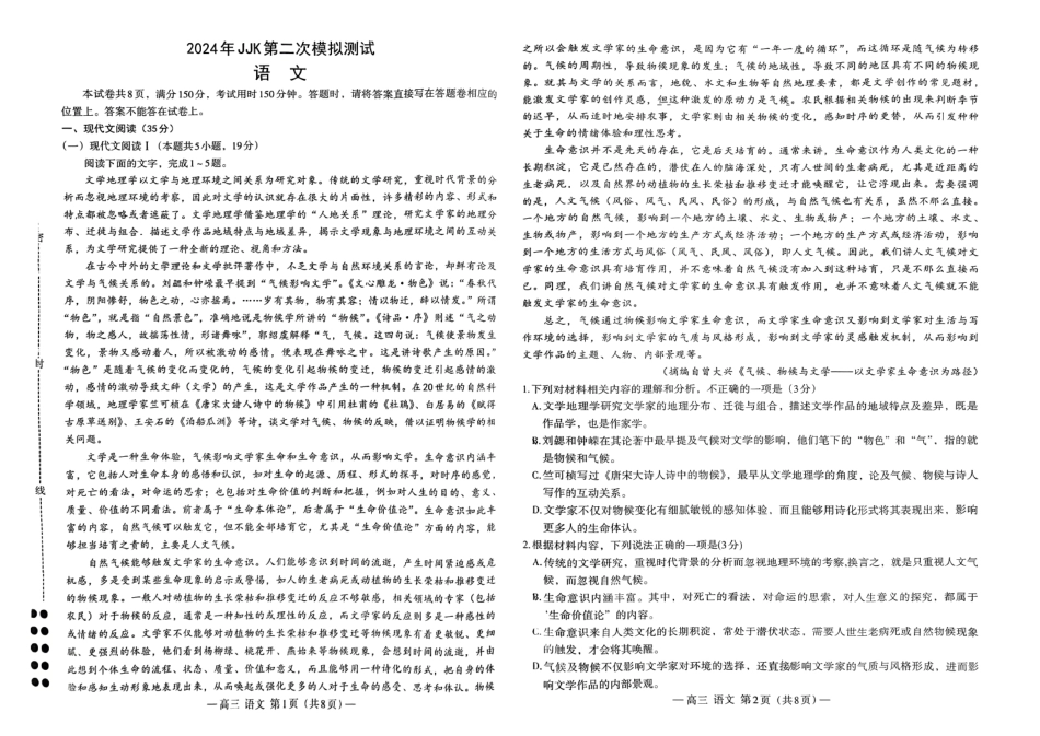 2024年江西省南昌市高三下学期二模考试语文试题+答案.pdf_第2页