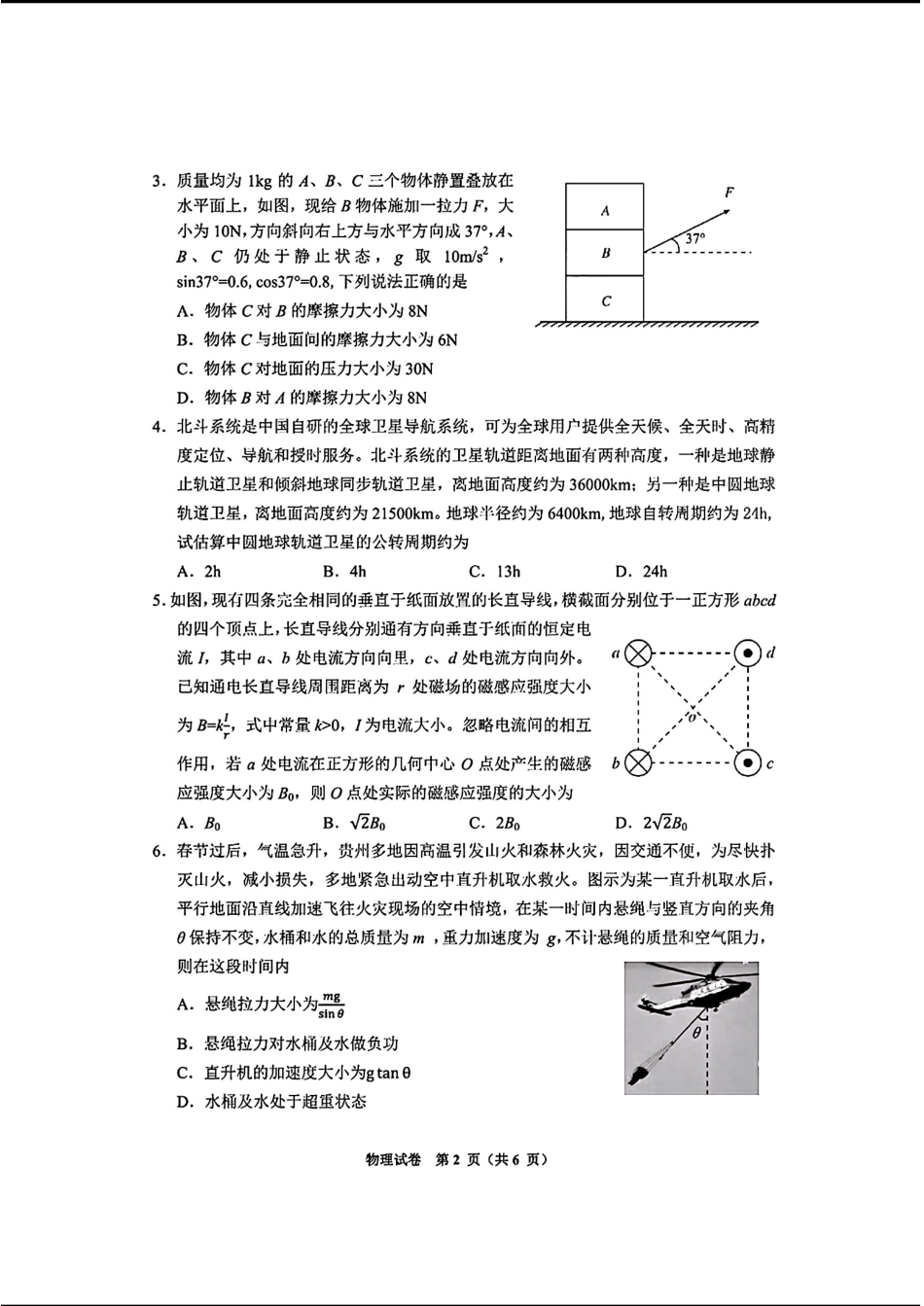 毕节市2024届高三第二次诊断性考试-物理+.pdf_第2页