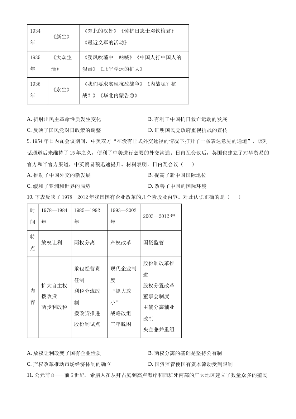 广东省华南师范大学附属中学2023-2024学年高三下学期4月高考适应性练习 历史 Word版含解析.docx_第2页