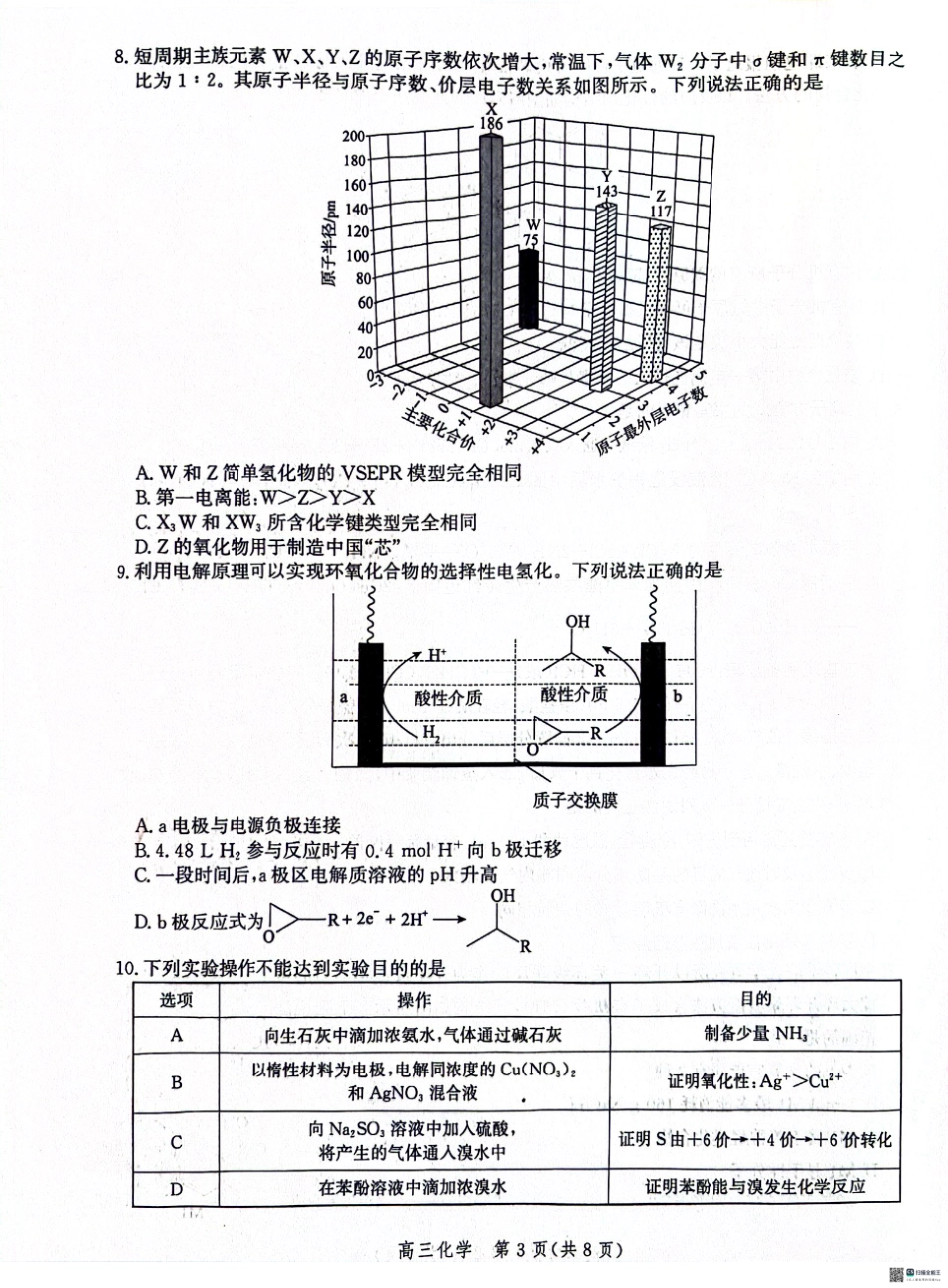 河北省沧衡名校联盟2023-2024学年高三下学期模拟考试(期中)化学试题+答案.pdf_第3页