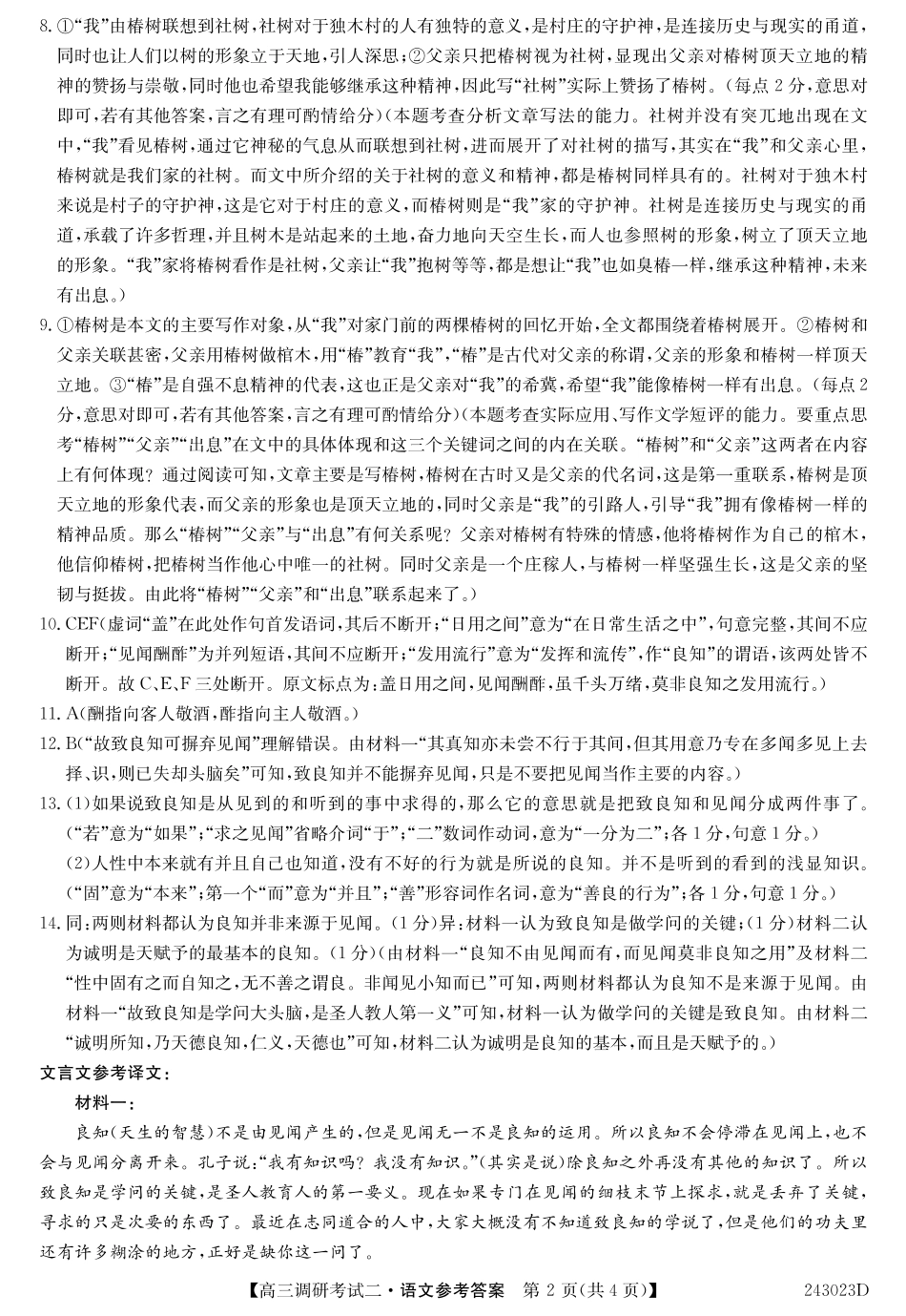 河南省TOP二十名校2023-2024学年高三上学期9月调研考试语文答案.pdf_第2页