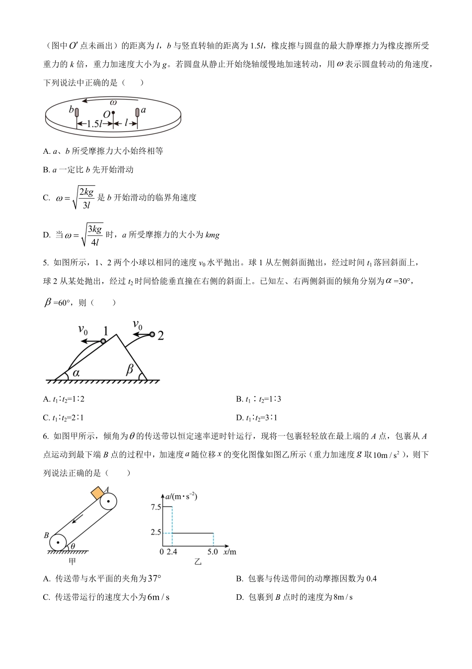 河南省许昌市禹州市高级中学2024届高三上学期11月月考 物理.pdf_第3页