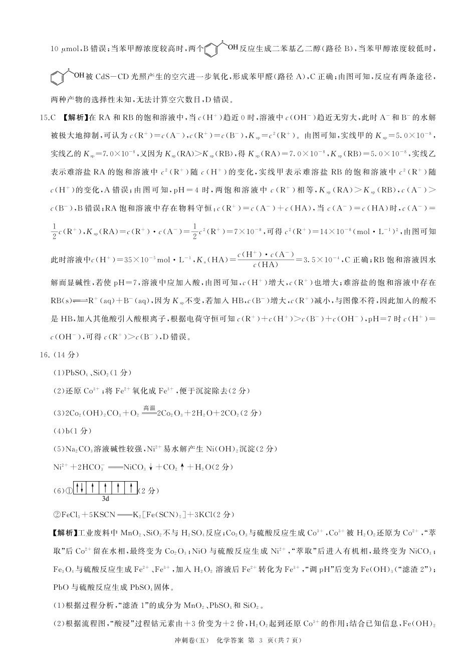 黑龙江2024届高三冲刺卷(五)化学答案.pdf_第3页