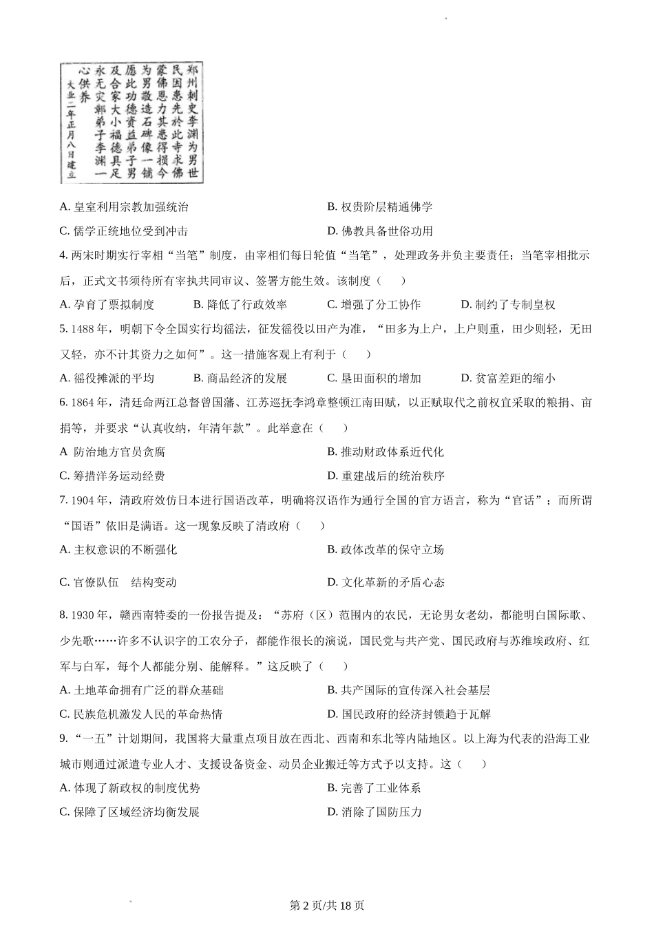 历史-福建省厦门市2024届高三下学期第二次质量检测.docx_第2页
