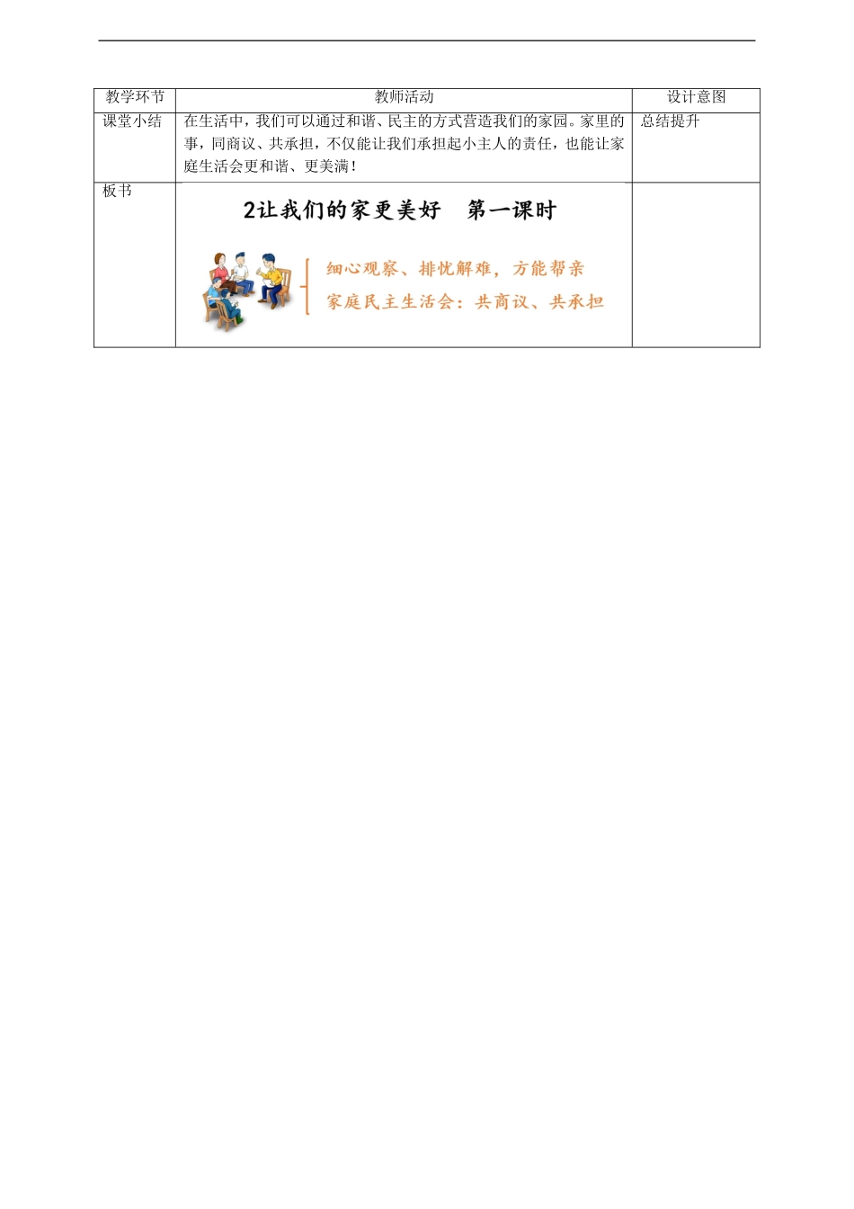 统编版道德与法治五年级下册第2课让我们的家更美好第二课时教学设计课题2让我们的家更美好第二课时单元第一单元学科道德与法治年级五年级学习目标1、情感态度与价值观目标:增强家庭责任意识和民主意识。2、能力...