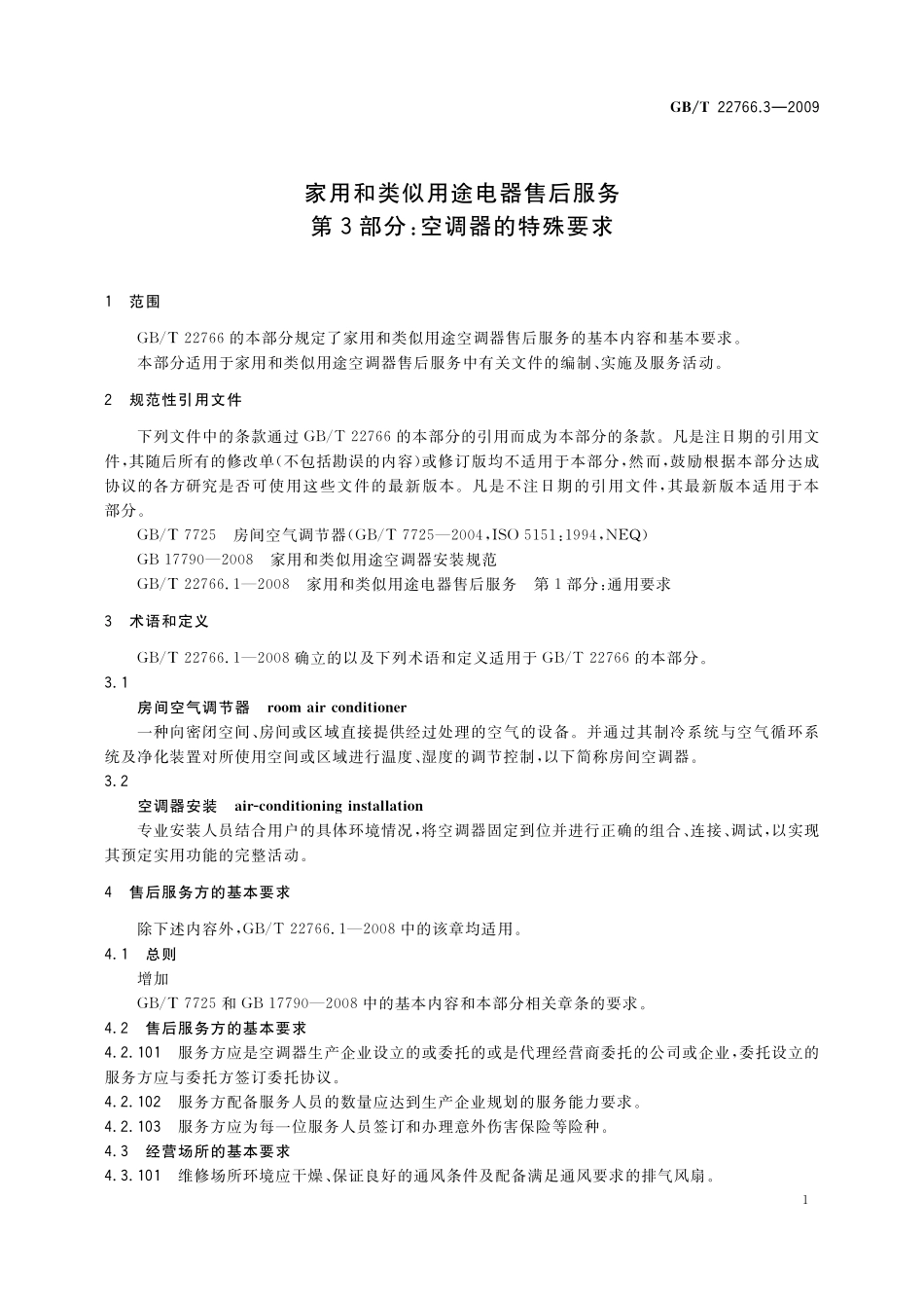 家用和类似用途电器售后服务第3部分:空调器的特殊要求22766_3-2009-gbt-e-300.pdf_第1页