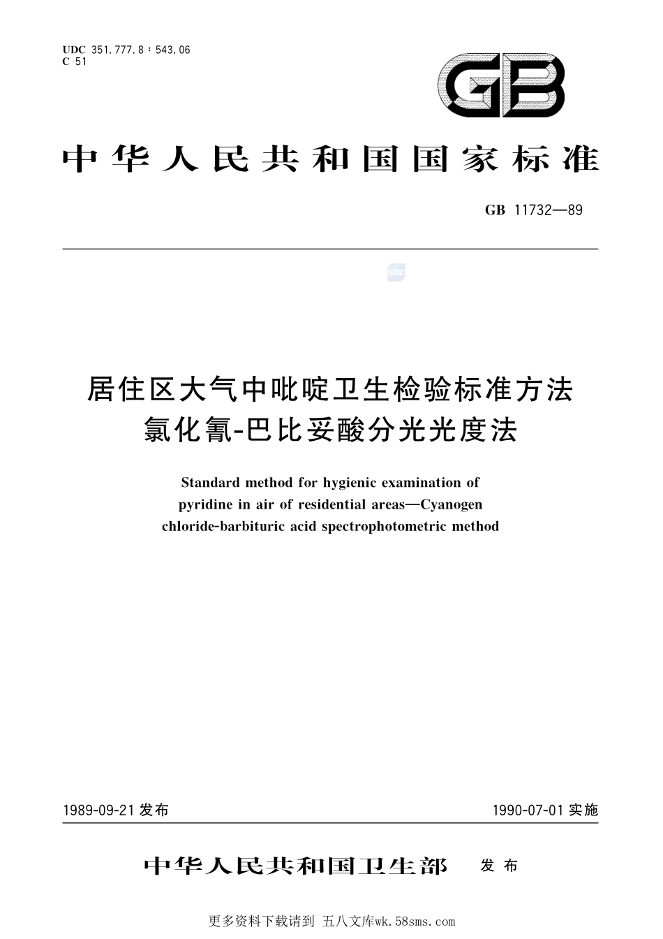 居住区大气中吡啶卫生检验标准方法氯化氰-巴比妥酸分光光度法11732-1989-gbt-e-300.pdf_第1页
