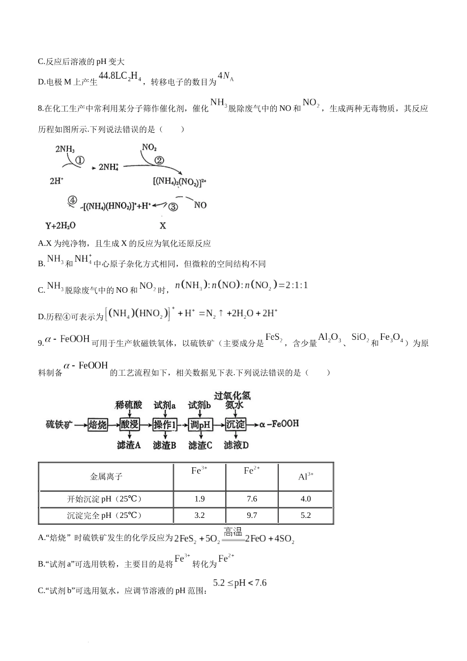 福建省漳州市2024届高三上学期第二次质量检测化学.docx_第3页