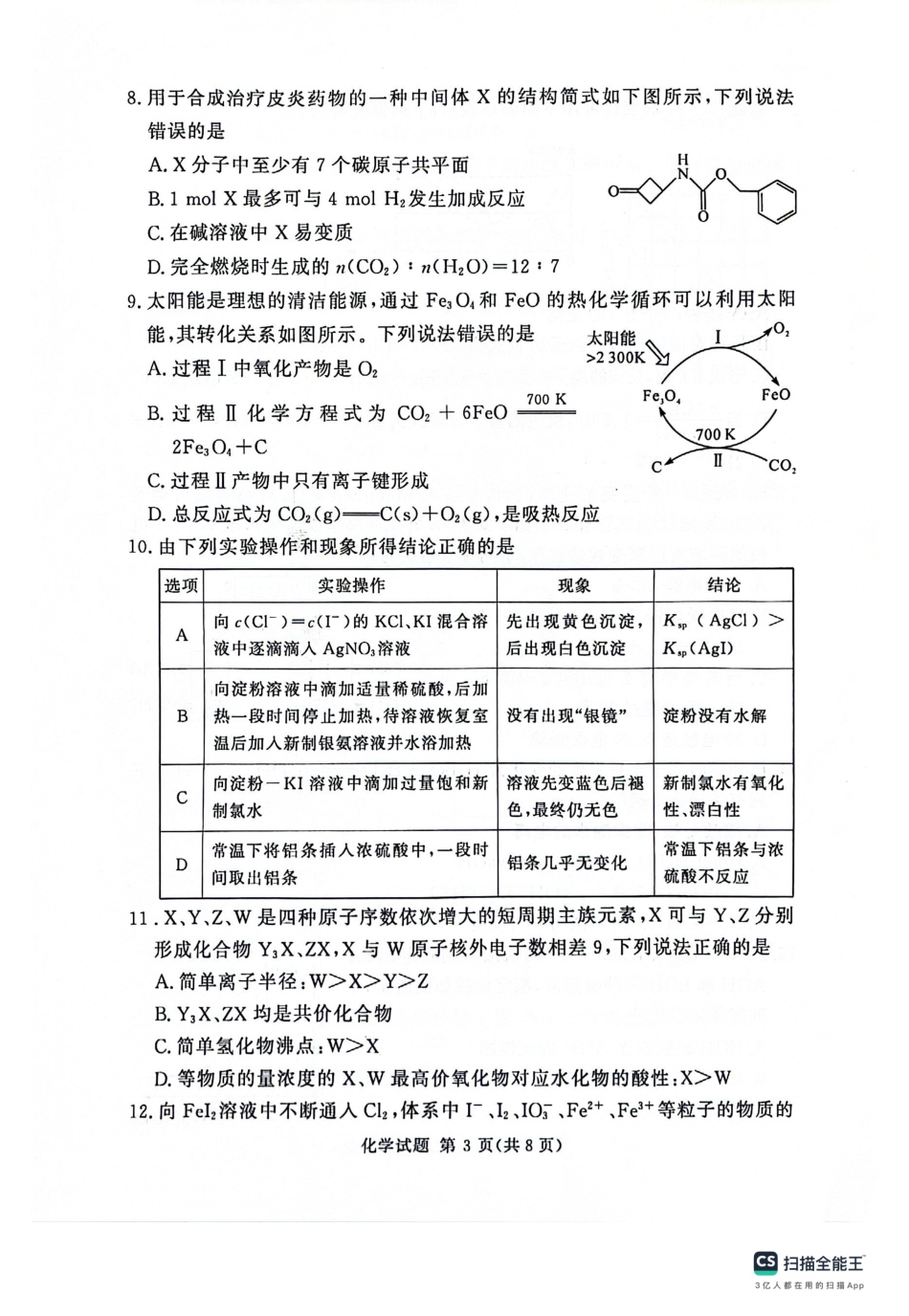 河南省湘豫名校2024届高三上学期11月期中联考化学.pdf_第3页