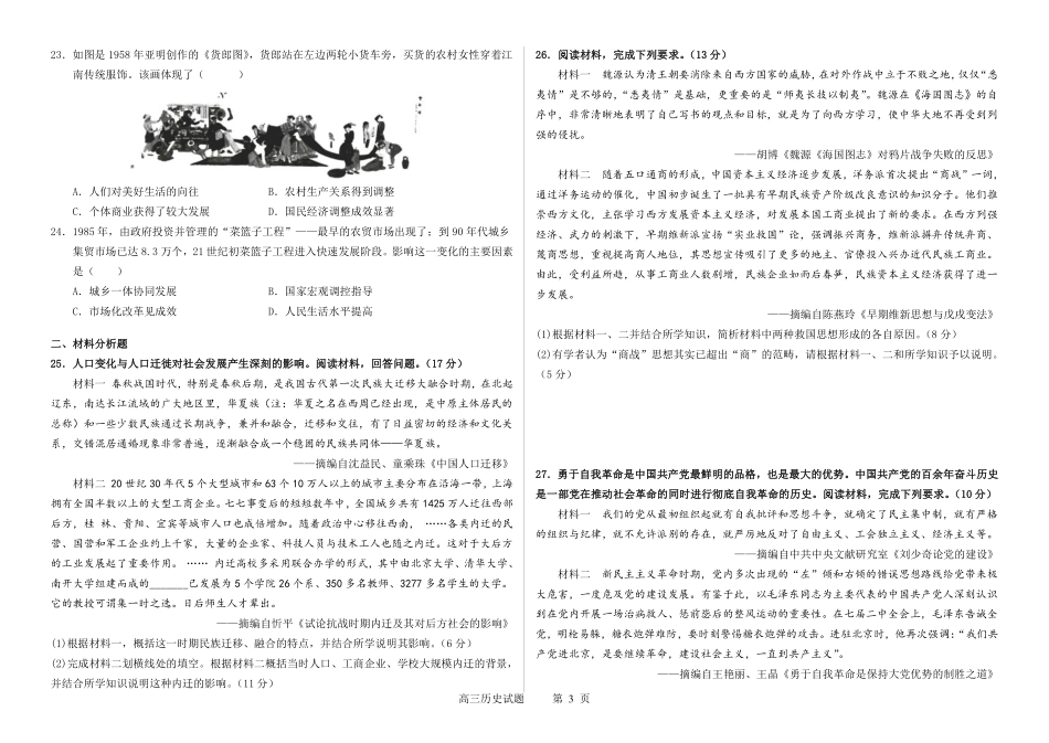 河南省周口市项城市第一高级中学2023-2024学年高三上学期11月期中试题历史.pdf_第3页