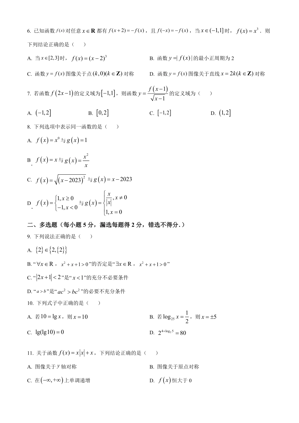 四校联考第一次调研考试高三数学试题试卷满分:150分,考试时间:120分注意事项:1.答题前请粘贴好条形码,填写好自己的姓名、班级、考号等信息.2.本试卷分第Ⅰ卷(选择题)和第Ⅱ卷(非选择题)两部分,满分1...