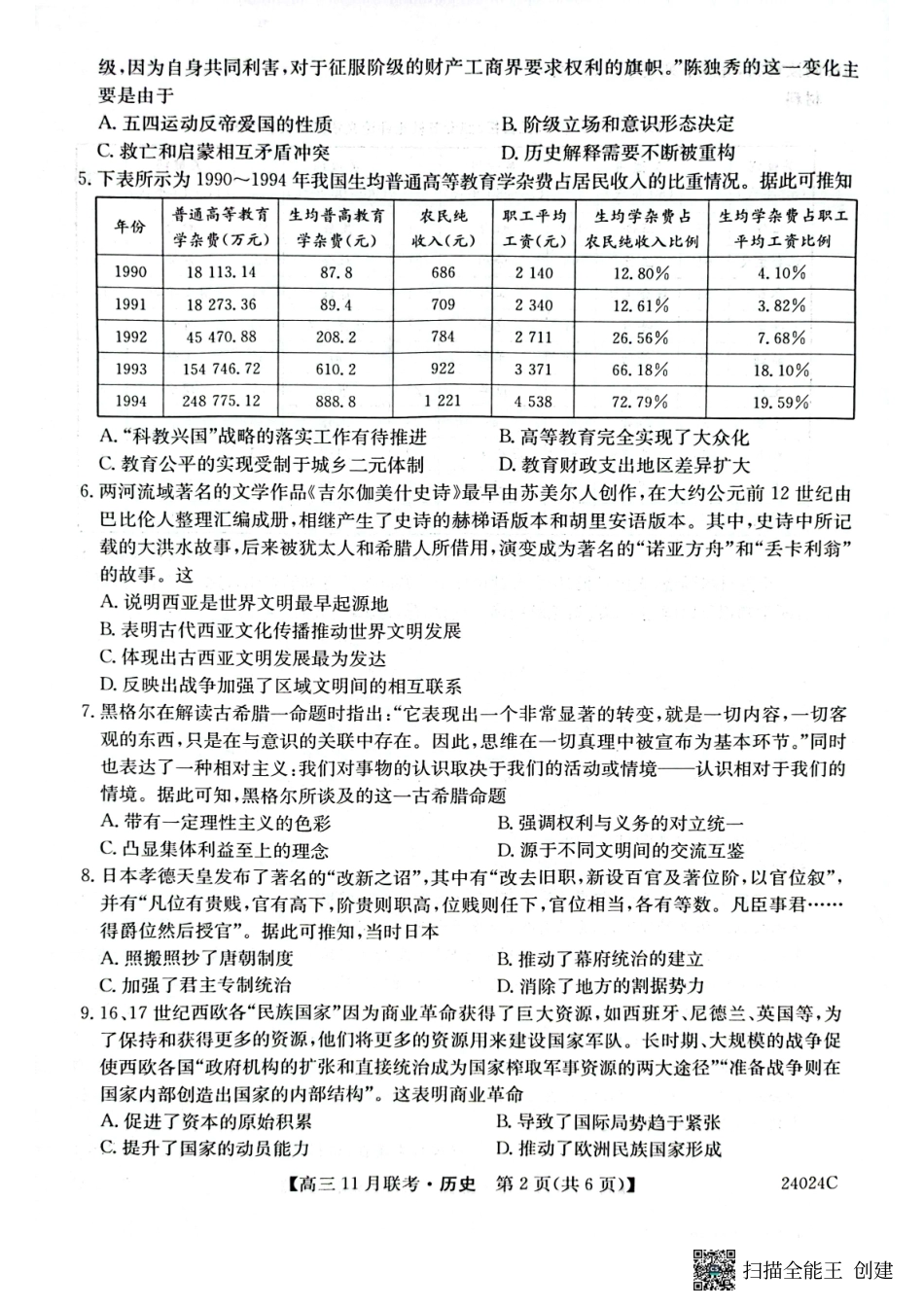 黑龙江省齐齐哈尔市普高联谊校2023-2024学年高三上学期11月月考 历史.pdf_第2页