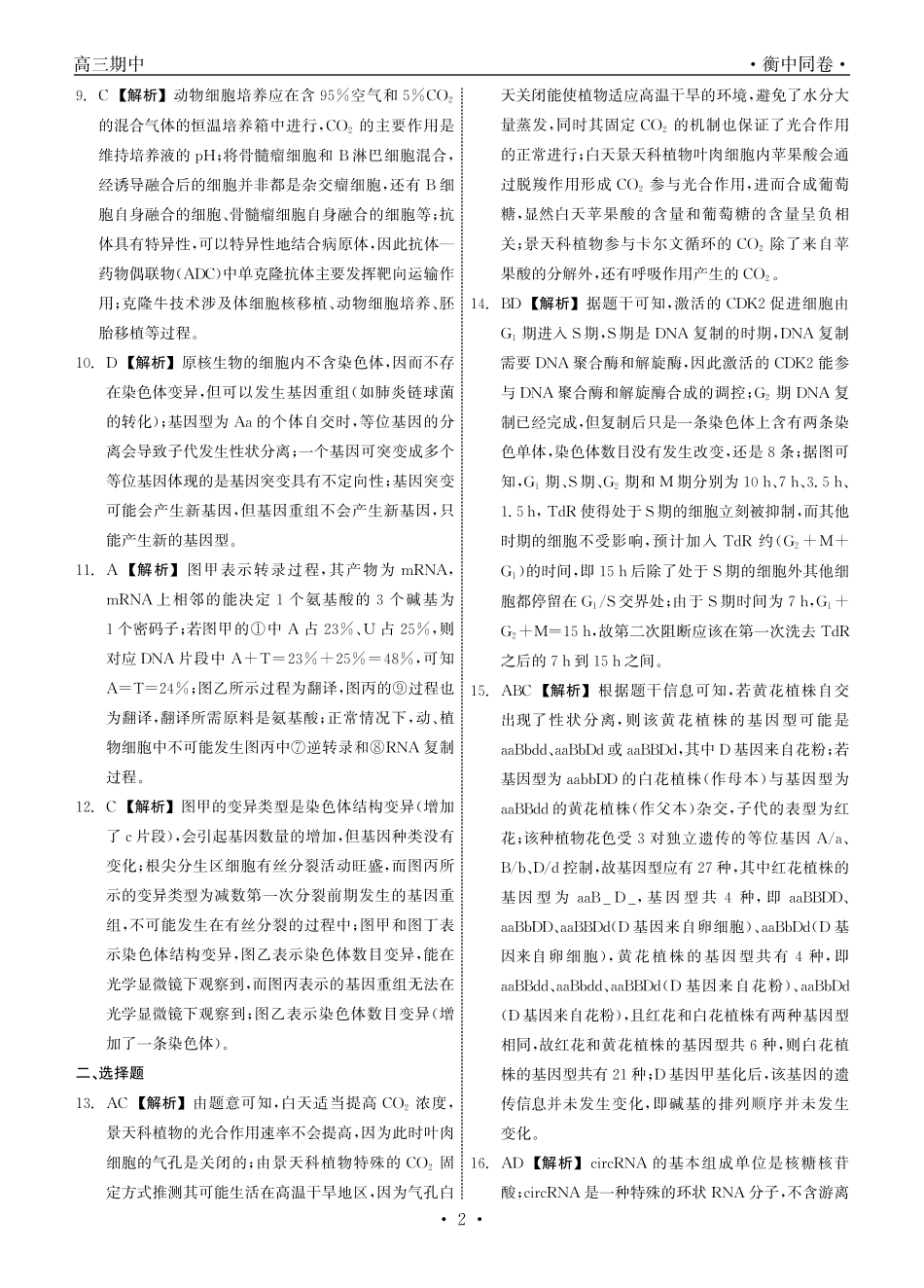 衡中同卷2023-2024学年度上学期高三年级期中考试 生物答案.pdf_第2页