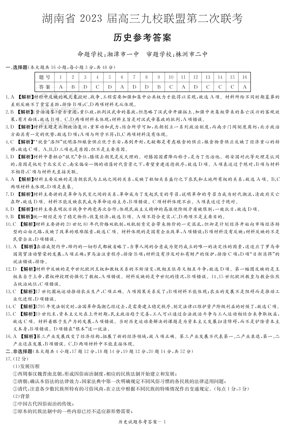 湖南省2023届高三九校联盟第二次联考历史答案.pdf_第1页
