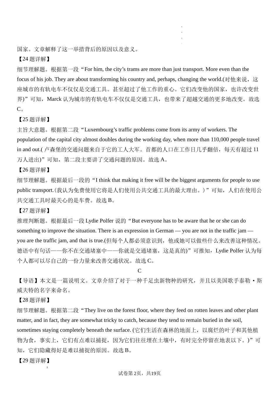 湖南省湘西州吉首市2024届高三上学期第二届中小学生教师解题大赛 英语参考答案.docx_第2页