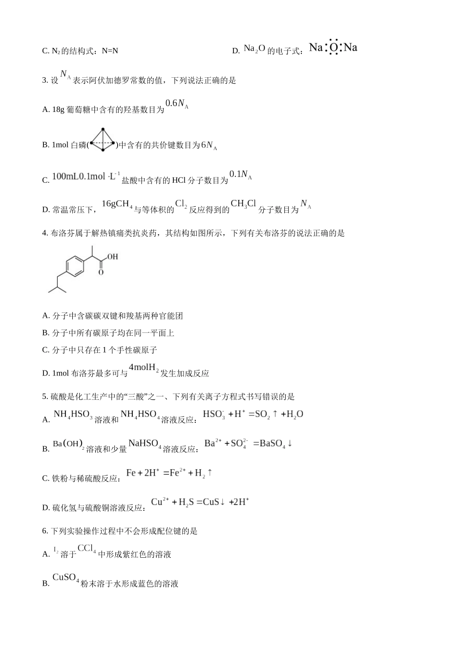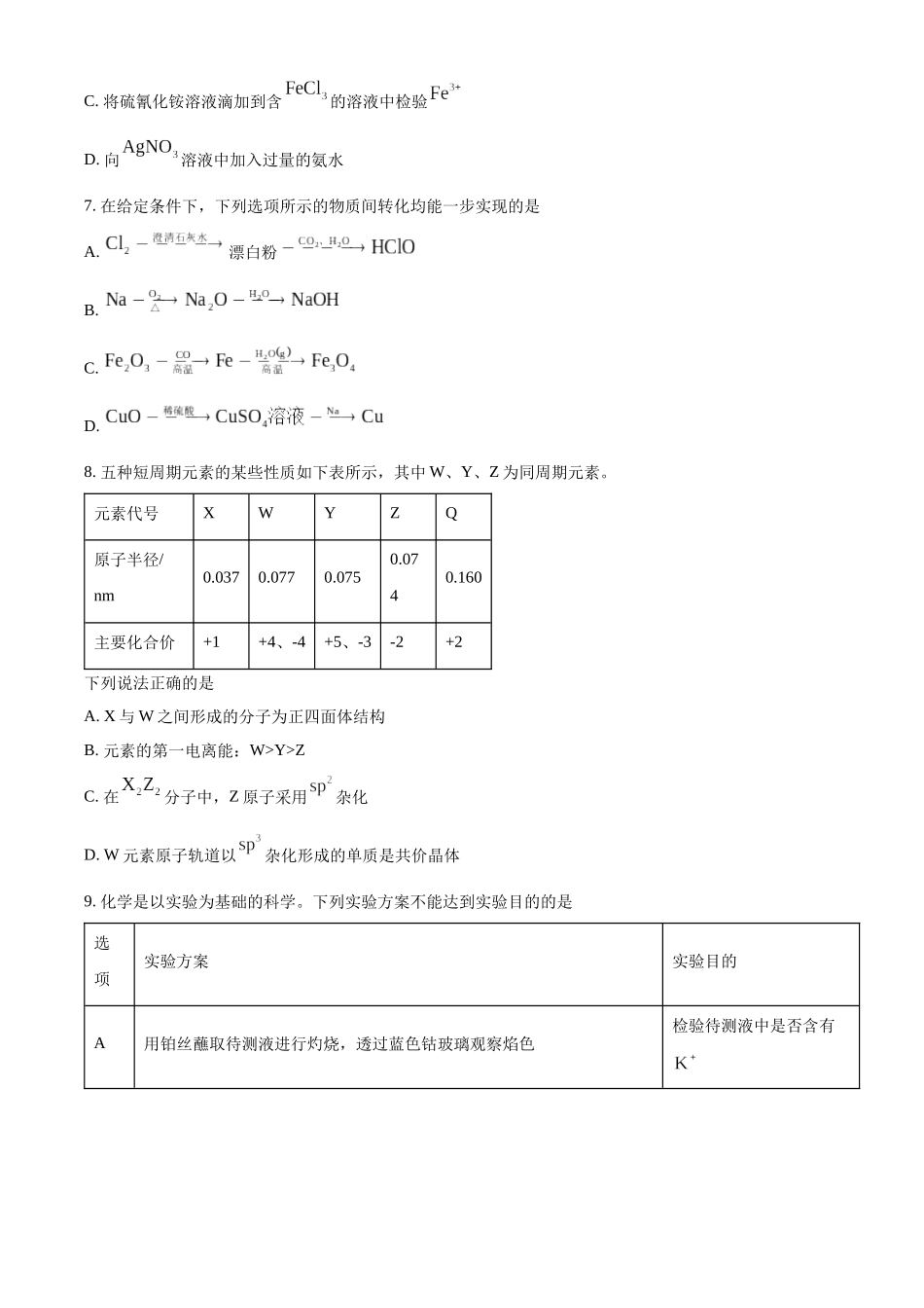 高三化学考生注意:1.答题前,考生务必将自己的姓名、考生号填写在试卷和答题卡上,并将考生号条形码粘贴在答题卡上的指定位置。2.回答选择题时,选出每小题答案后,用铅笔把答题卡对应题目的答案标号涂黑。如需...