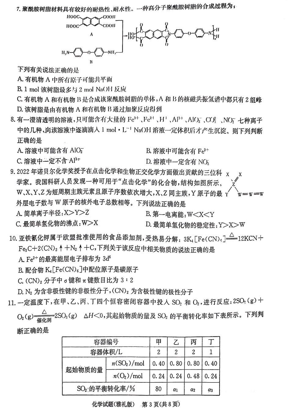 湖南省长沙市雅礼中学2022-2023学年高三下学期月考试卷(七)化学.pdf_第3页