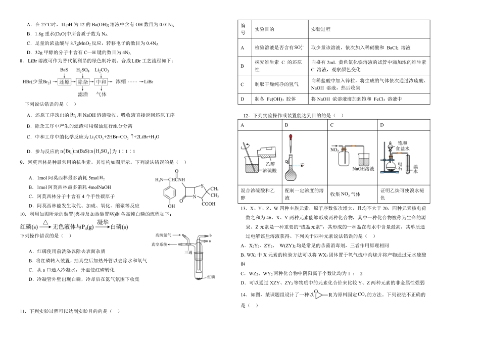 吉林省长春外国语学校2023-2024学年高三上学期9月月考试题 化学.pdf_第2页