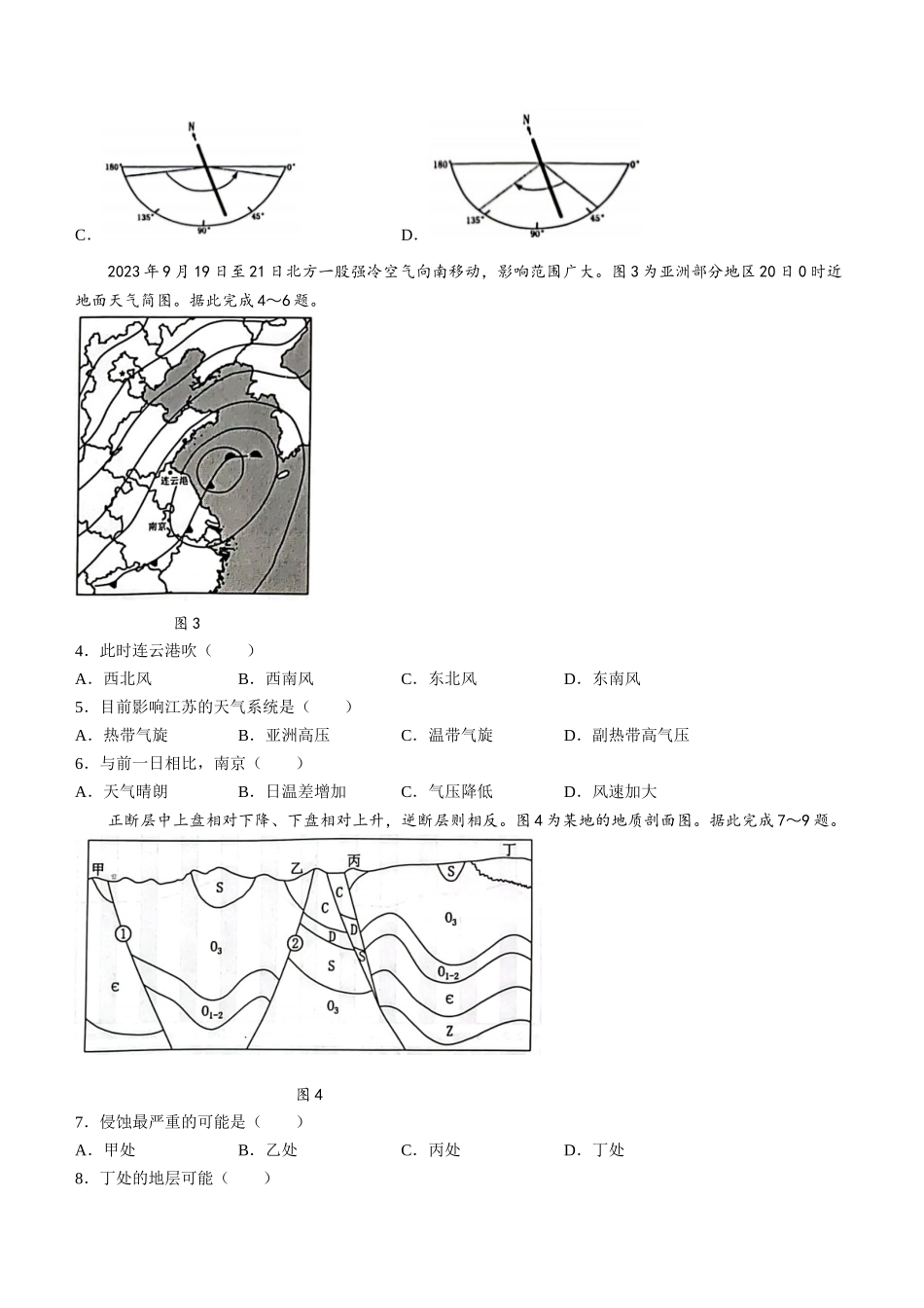 江苏省连云港市2023-2024学年高三上学期期中考试 地理.docx_第3页