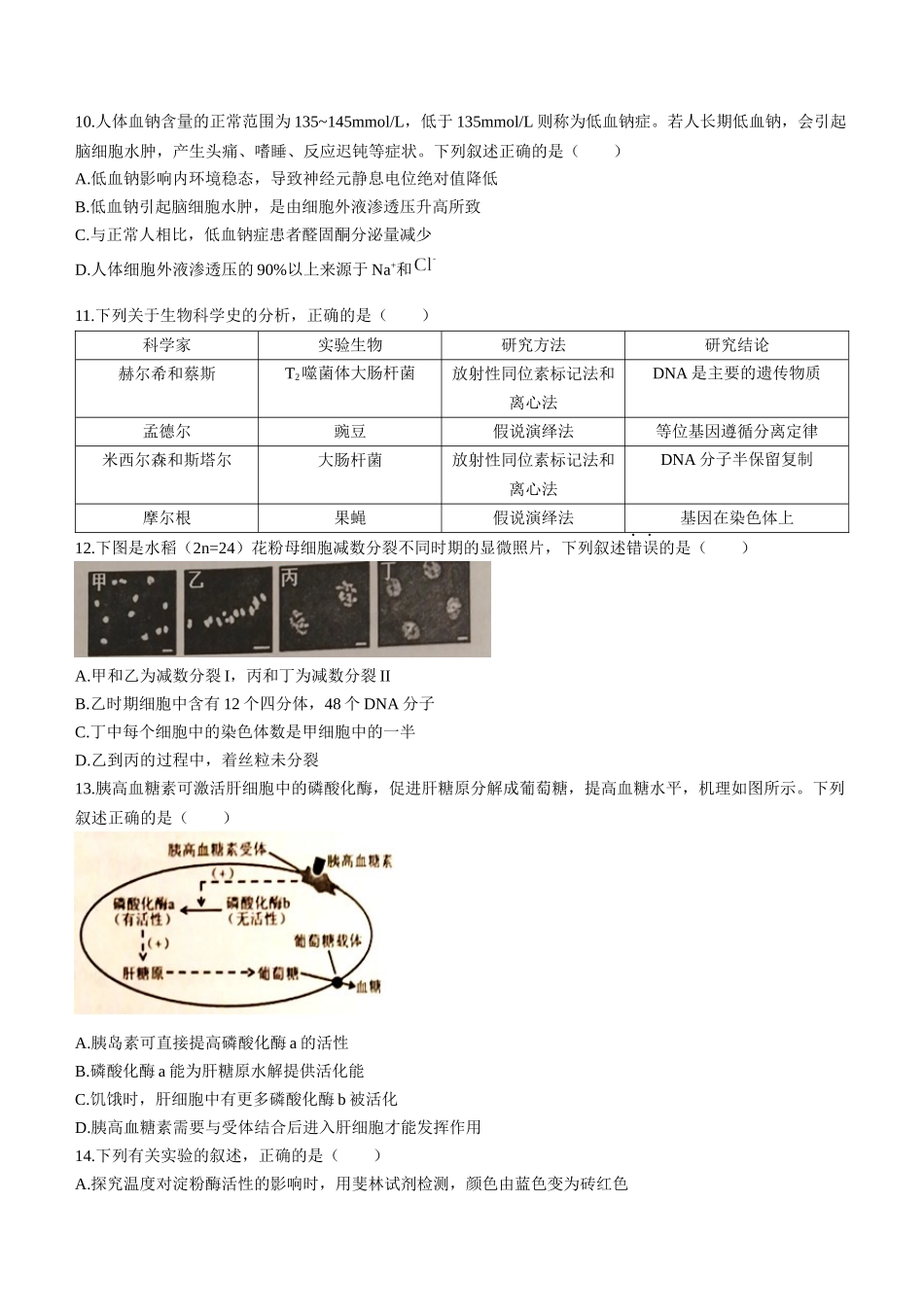 2023~2024学年度第一学期高三年级期中抽测生物试题(满分:100分考试时间:75分钟)注意事项:考生答题前务必将自己的学校、姓名、班级、考号填写在答题卡的指定位置。答选择题时,用2B铅笔在答题卡上将题号下的...
