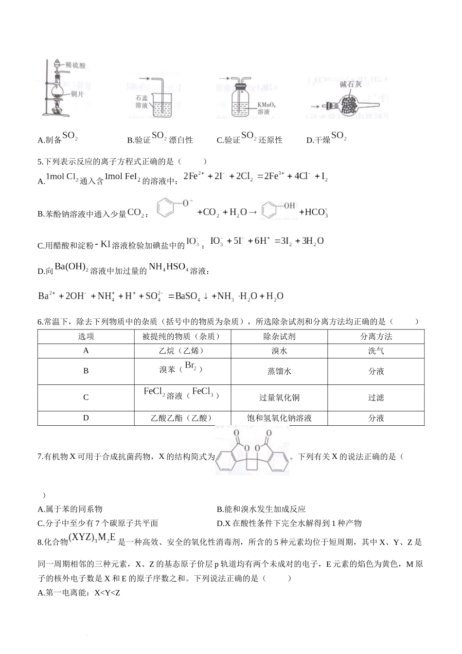 江西上进教育2024 届高三一轮总复习验收考试化学.docx_第2页