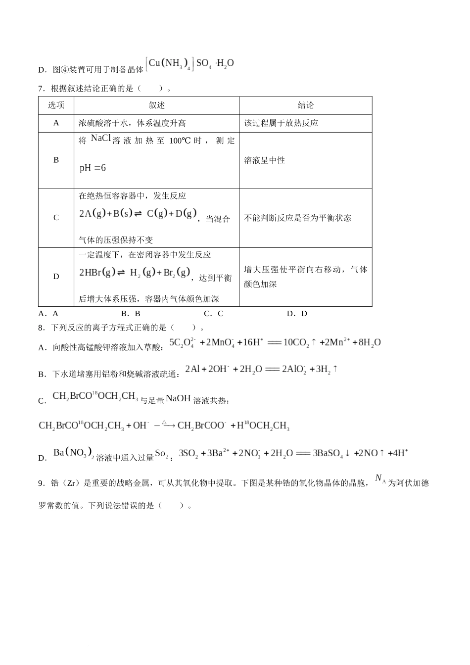江西省新余市2024届高三上学期期末质量检测化学.docx_第2页