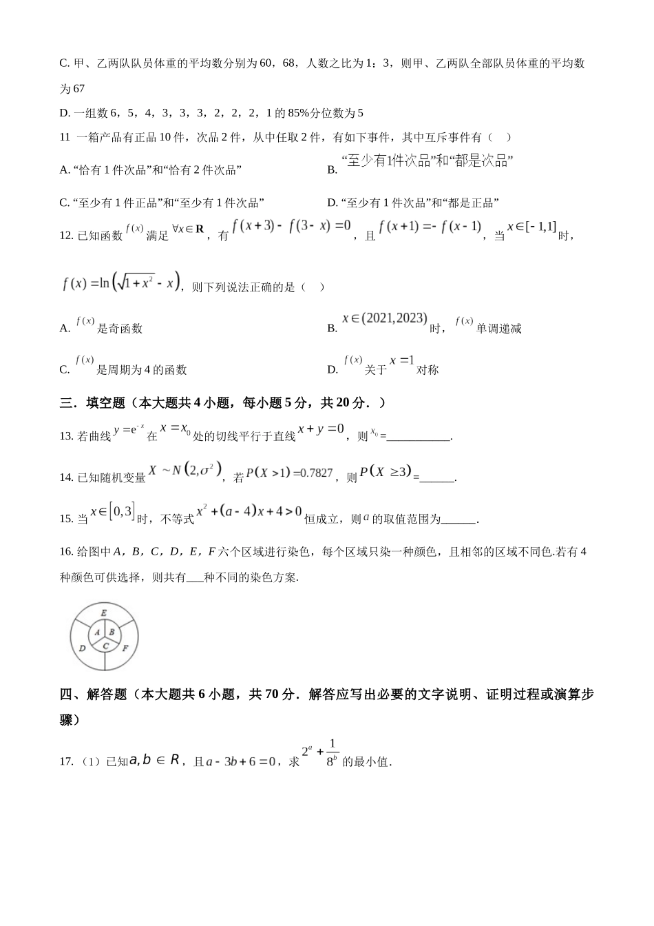江西省宜春市丰城中学2023-2024学年高三上学期期中考试 数学.docx_第3页