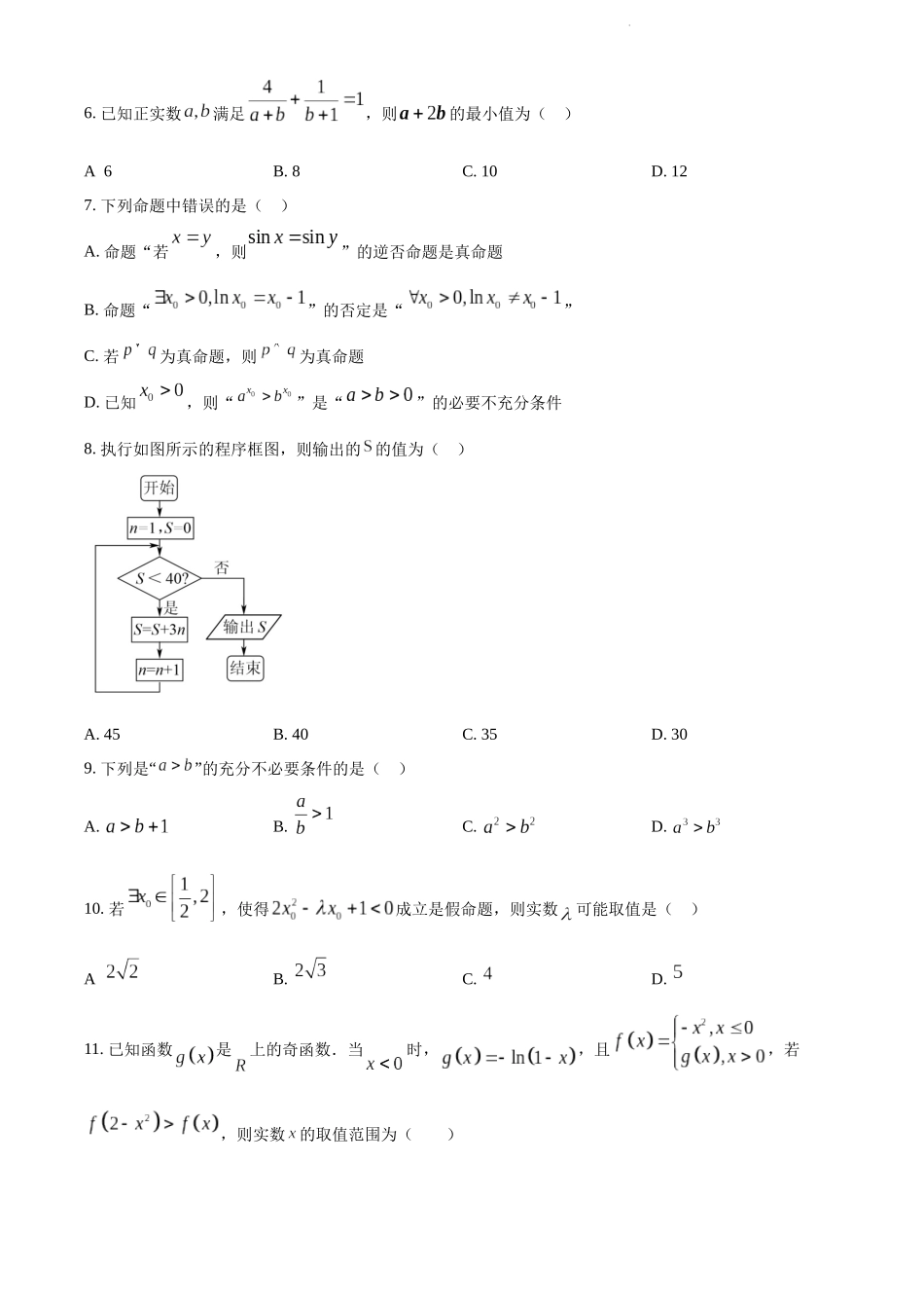 精品解析:新疆新和县实验中学2023届高三上学期第一次月考数学(理)试题(原卷版).docx_第2页