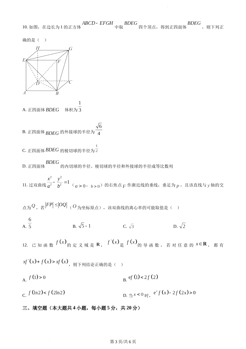 精品解析:云南省昆明市云南师大附中2024届高三高考适应性月考数学试题(六)(原卷版).docx_第3页