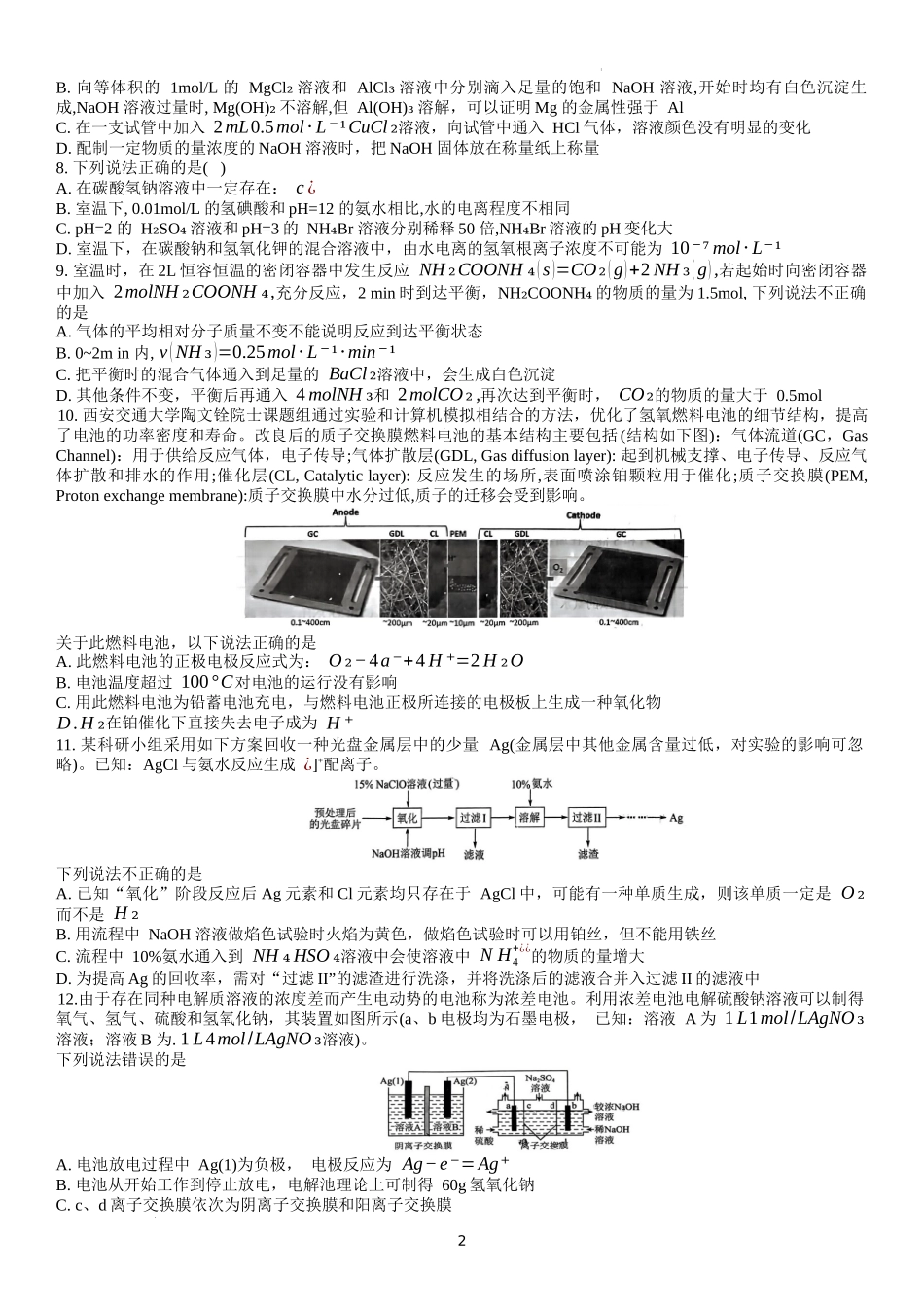 辽宁省大连市滨城高中联盟2023-2024学年高三上学期期中(Ⅱ)考试 化学.docx_第2页