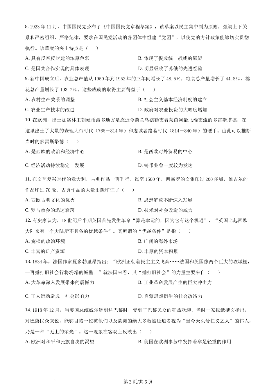 山东省济宁市第一中学2024届高三上学期12月月考 历史.docx_第3页