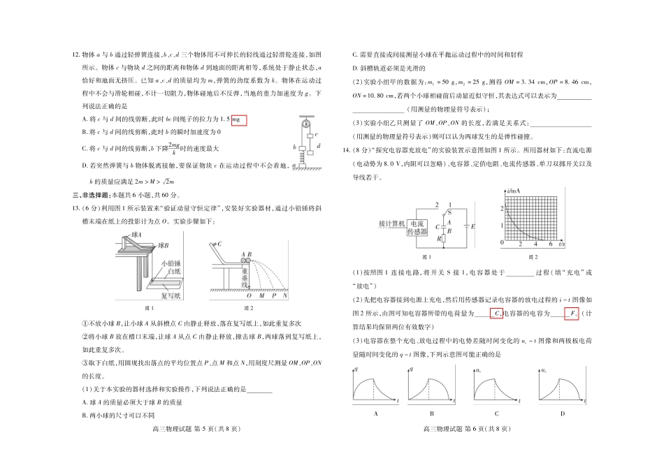 山东省普高大联考2023-2024学年高三上学期11月联合质量测评 物理.pdf_第2页