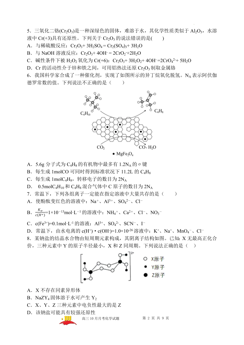 山西大学附属中学2023-2024学年高三上学期10月月考 化学.pdf_第2页