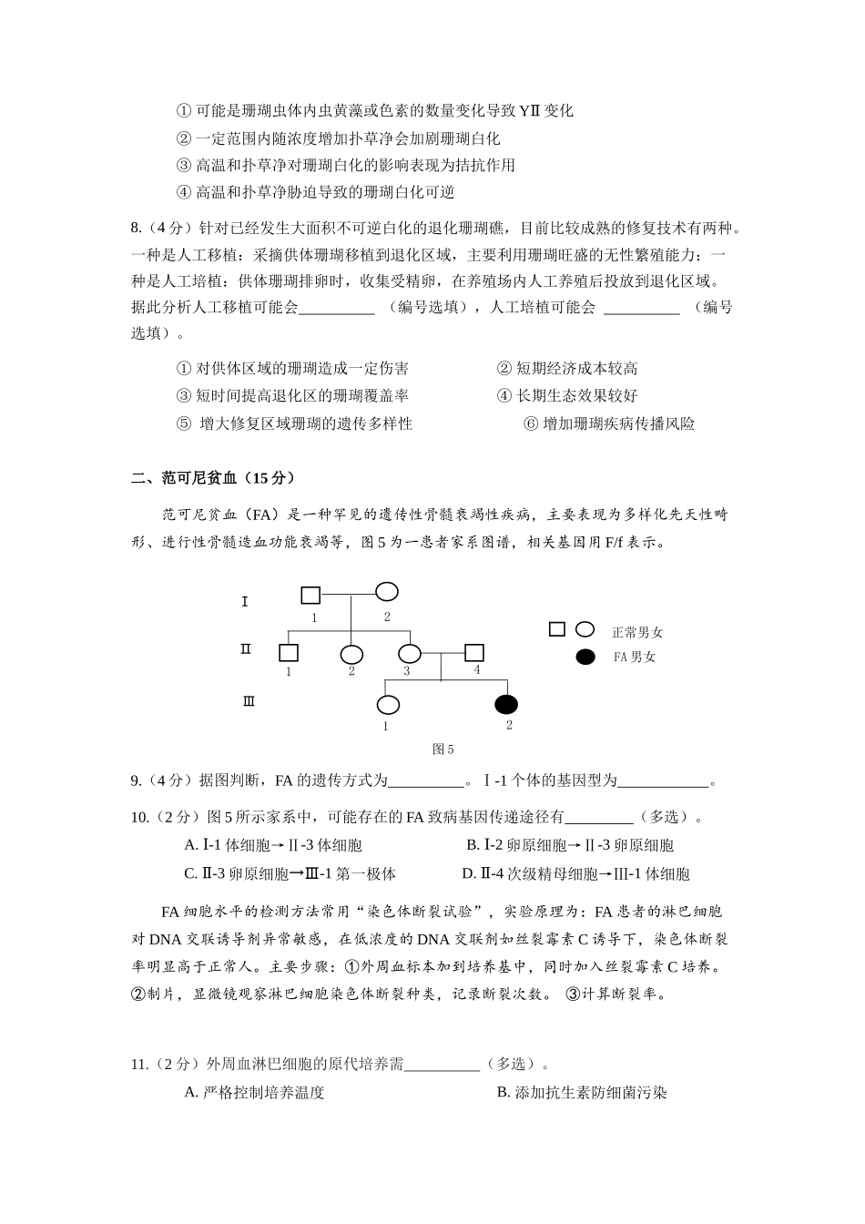 2023学年宝山区第二学期期中高三年级生物学科等级考质量监测试卷考生注意:1.试卷满分100分,考试时间60分钟。2.所有答案必须填涂或填写在答题纸上,做在试卷上一律不得分。3.单选题有一个正确答案,多选题有...