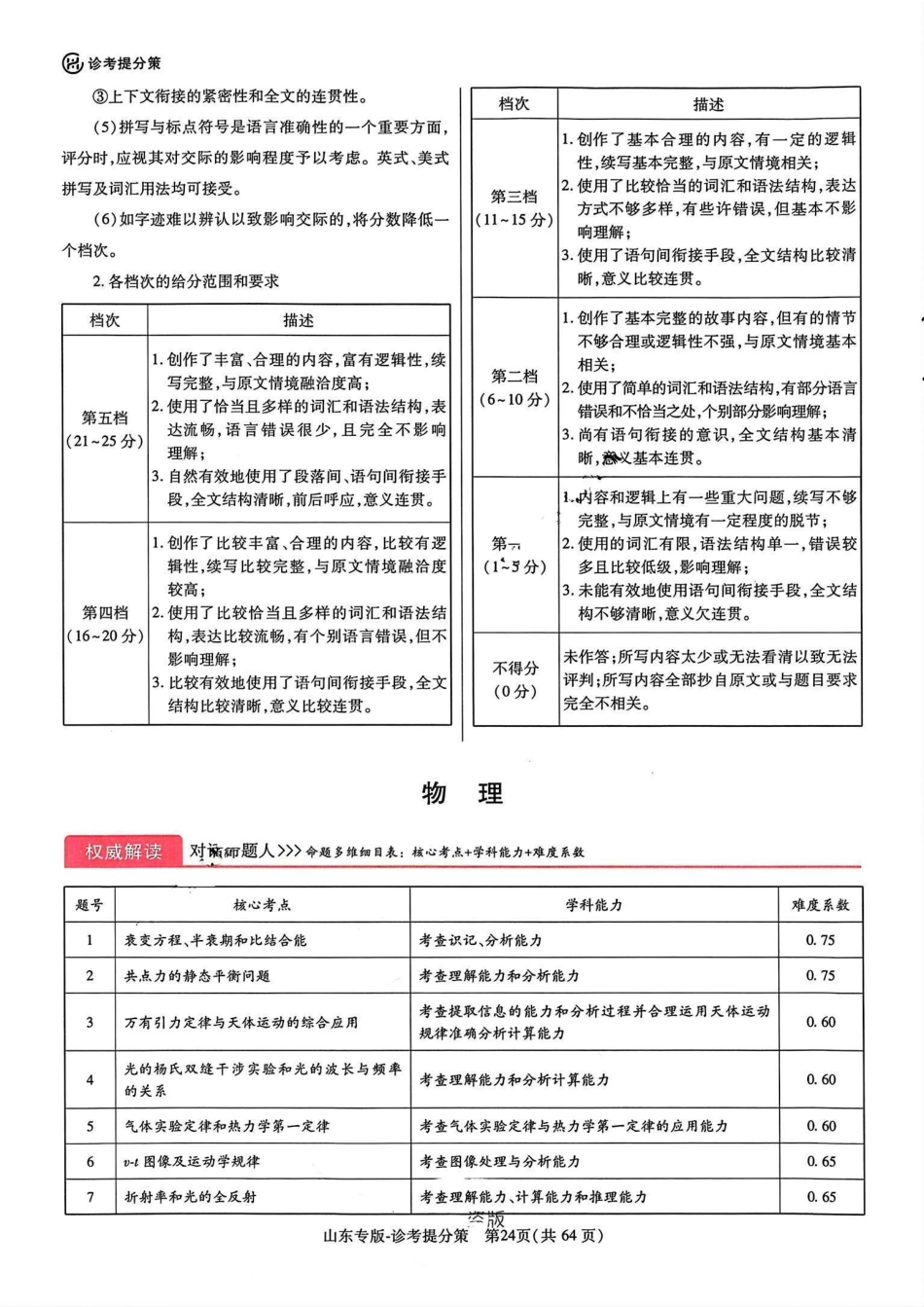 王后雄 高考押题预测卷 2024山东专版-物理答案.pdf_第1页