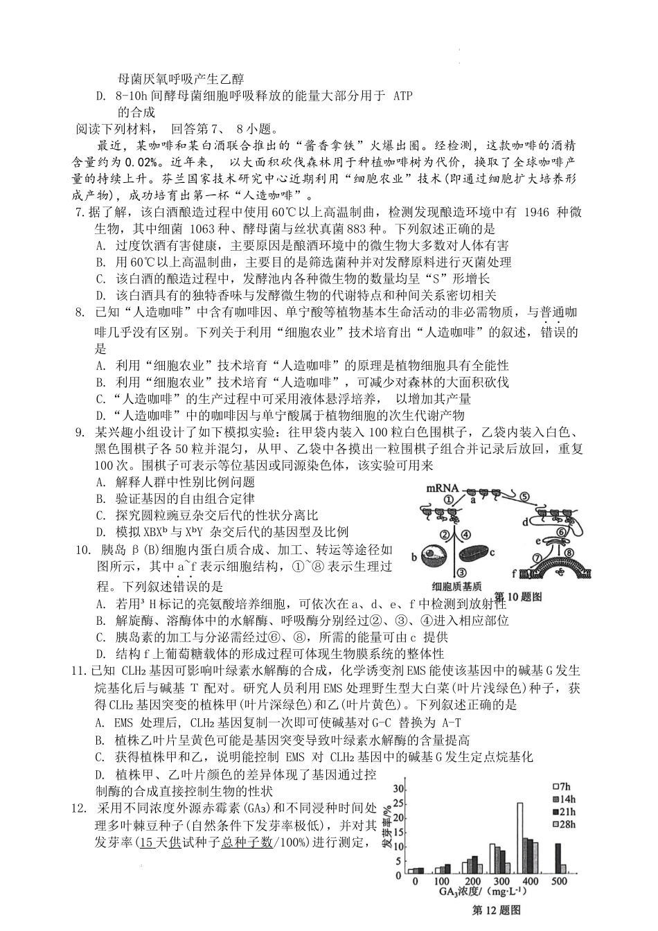 浙江省温州市普通高中2024届高三上学期第一次适应性考试(温州一模)生物.docx_第2页