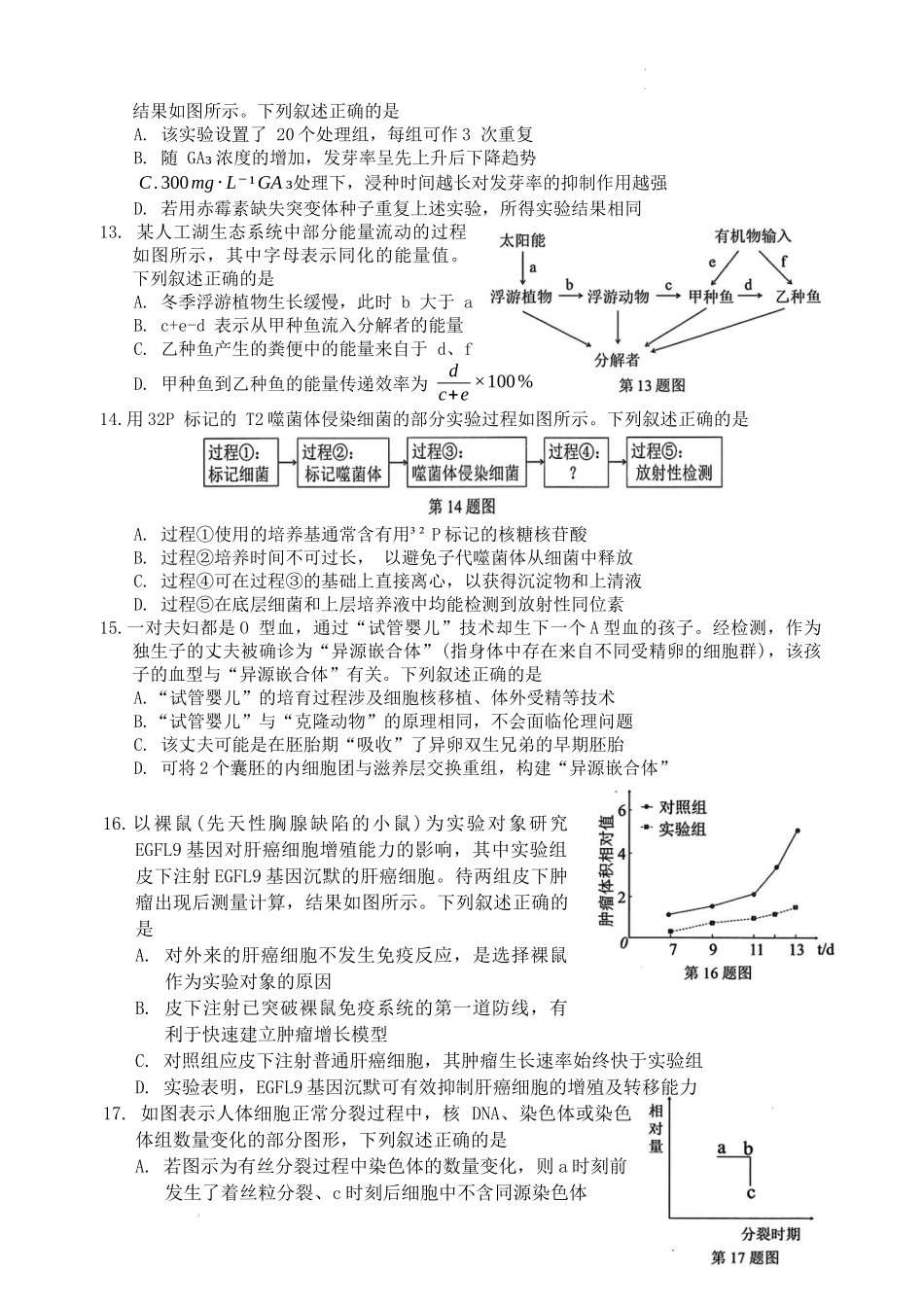 机密★考试结束前温州市普通高中2024届高三第一次适应性考试生物试题卷2023.11考生须知:1.本试题卷分选择题和非选择题两部分,共8页,满分100分,考试时间90分钟。2.考生答题前,务必将自己的姓名、准考证号用黑...