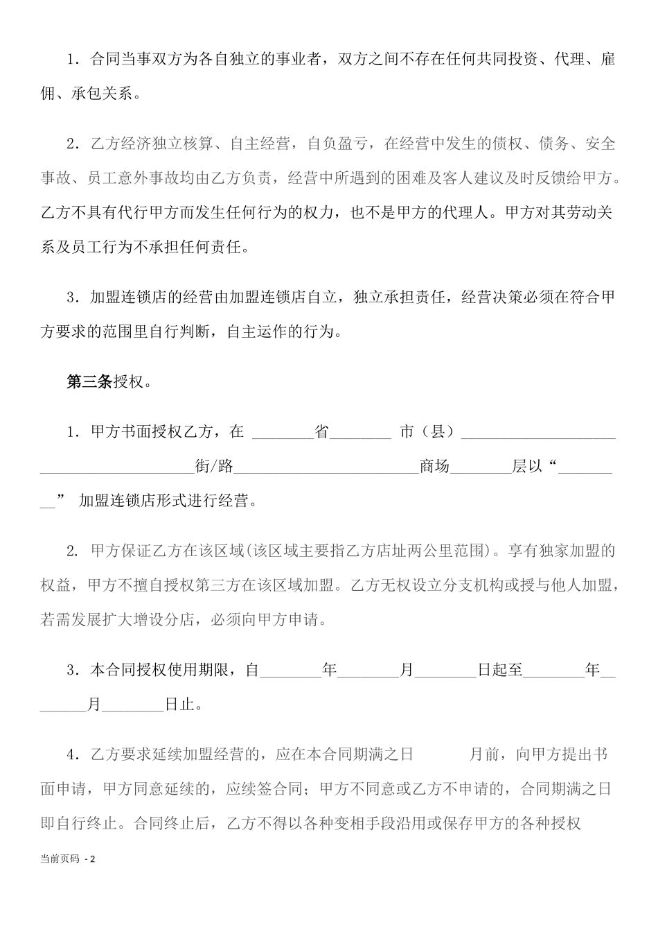 加盟合作经营合同书合同编号:甲方:__________________________(以下简称甲方)乙方:__________________________(以下简称乙方)经乙方申请,甲方审核批准同意,就乙方以连锁经营形式加盟“_________”事宜,...