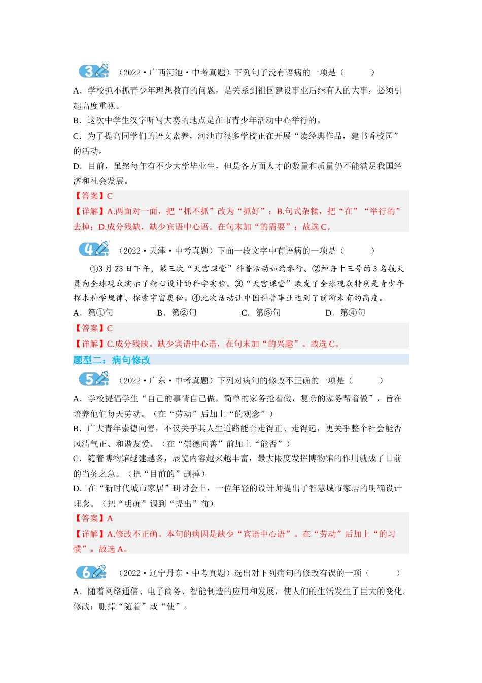 专题04病句辨析与修改(解析版)-2023年中考语文专项复习讲练测(部编版).docx_第2页
